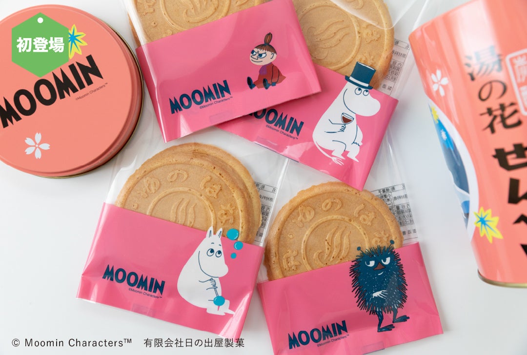 1957年創業の〈日の出屋製菓〉が初登場。三重県湯の山温泉の銘菓「湯の花せんべい」は、サクサクとした食感の炭酸せんべいで、三重のロングセラー商品です。そんな温泉銘菓に、多くのファンに愛されるMOOMINとのコラボパッケージが登場!缶コレにもぴったりな期間限定品を手に入れて。