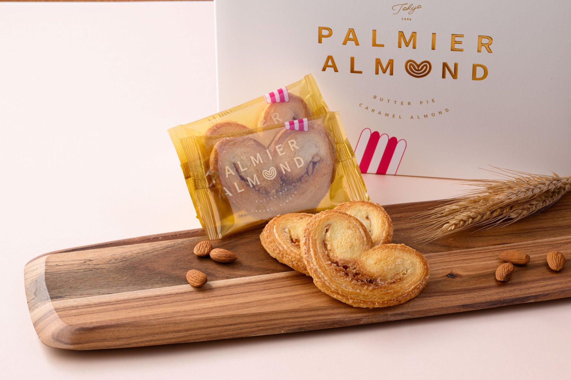 1960年代から発売されているオリジナル商品を2024年にリニューアル。キャラメルとアーモンドを包み込んだ、サクサクのバターの風味豊かな焼き菓子。フランス伝統のパイ菓子「パルミエ」を芳醇にアレンジしました。