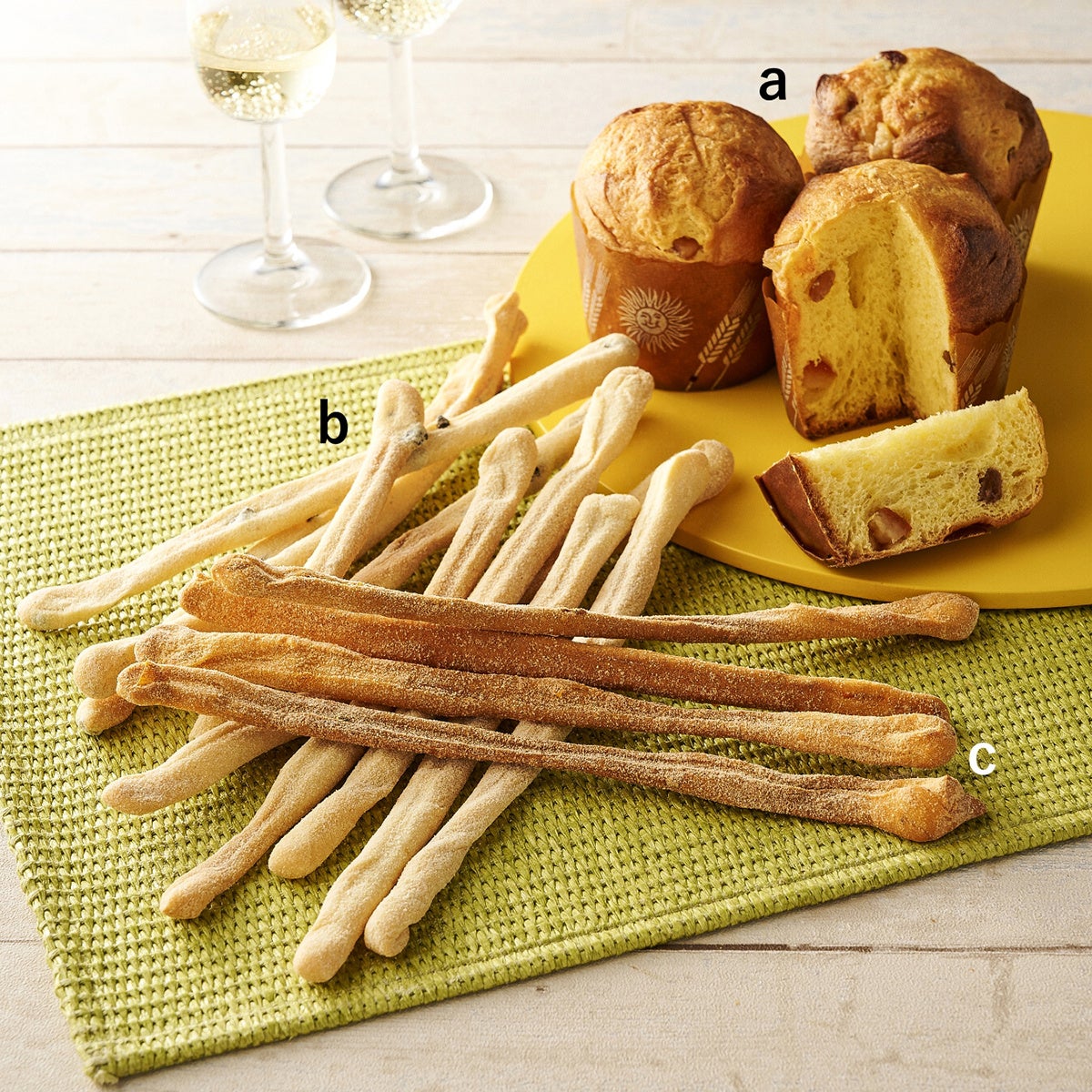伝統製法で作られるパネットーネやグリッシーニ。そのままでももちろん、お酒のおつまみにも。