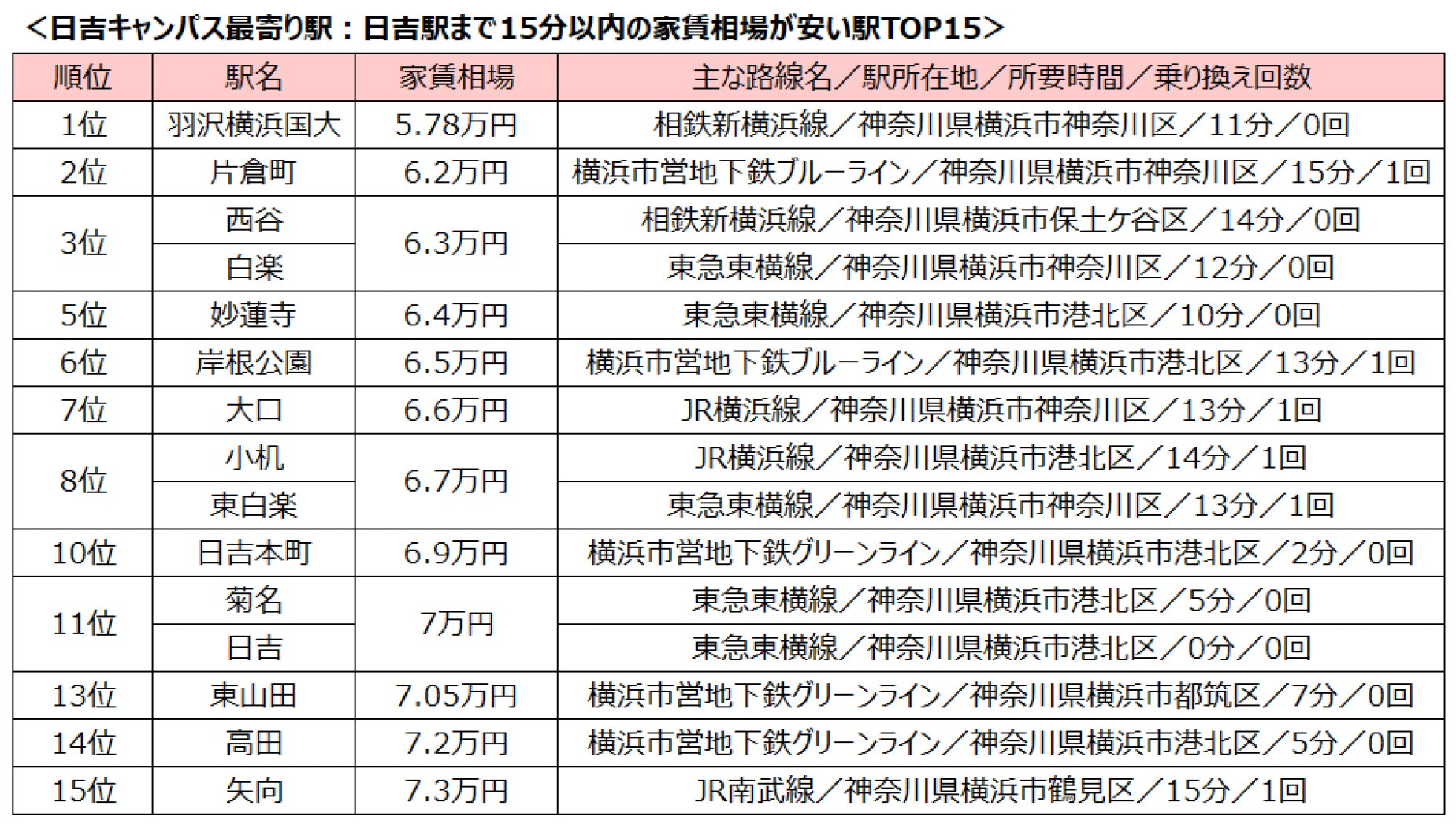 株式会社リクルート(本社:東京都千代田区、代表取締役社長:北村吉弘、以下リクルート)が運営するニュースサイト『SUUMOジャーナル(スーモジャーナル)』は、住まいや暮らしに関するさまざまなテーマについて調査を実施し、結果をご紹介しています。新年度が始まる春は引越しシーズン。大学進学を機に新年度から一人暮らしをスタートさせる人も多いはず。そこで今回は、慶應義塾大学日吉キャンパスまで電車で15分、三田キャンパスまで電車で20分までの、通いやすい学生向け賃貸物件(10平米以上~40平米未満、ワンルーム・1K・1DK)について、家賃相場が安い駅のランキング結果をお知らせいたします。他にも、各キャンパス周辺にある学生が住む街としておすすめの駅についてもご紹介。また今回レターで紹介できなかった駅やおすすめの駅、さらに実際に住んだことのある人たちの口コミも『SUUMOジャーナル』 で紹介していますので、ぜひご覧ください。