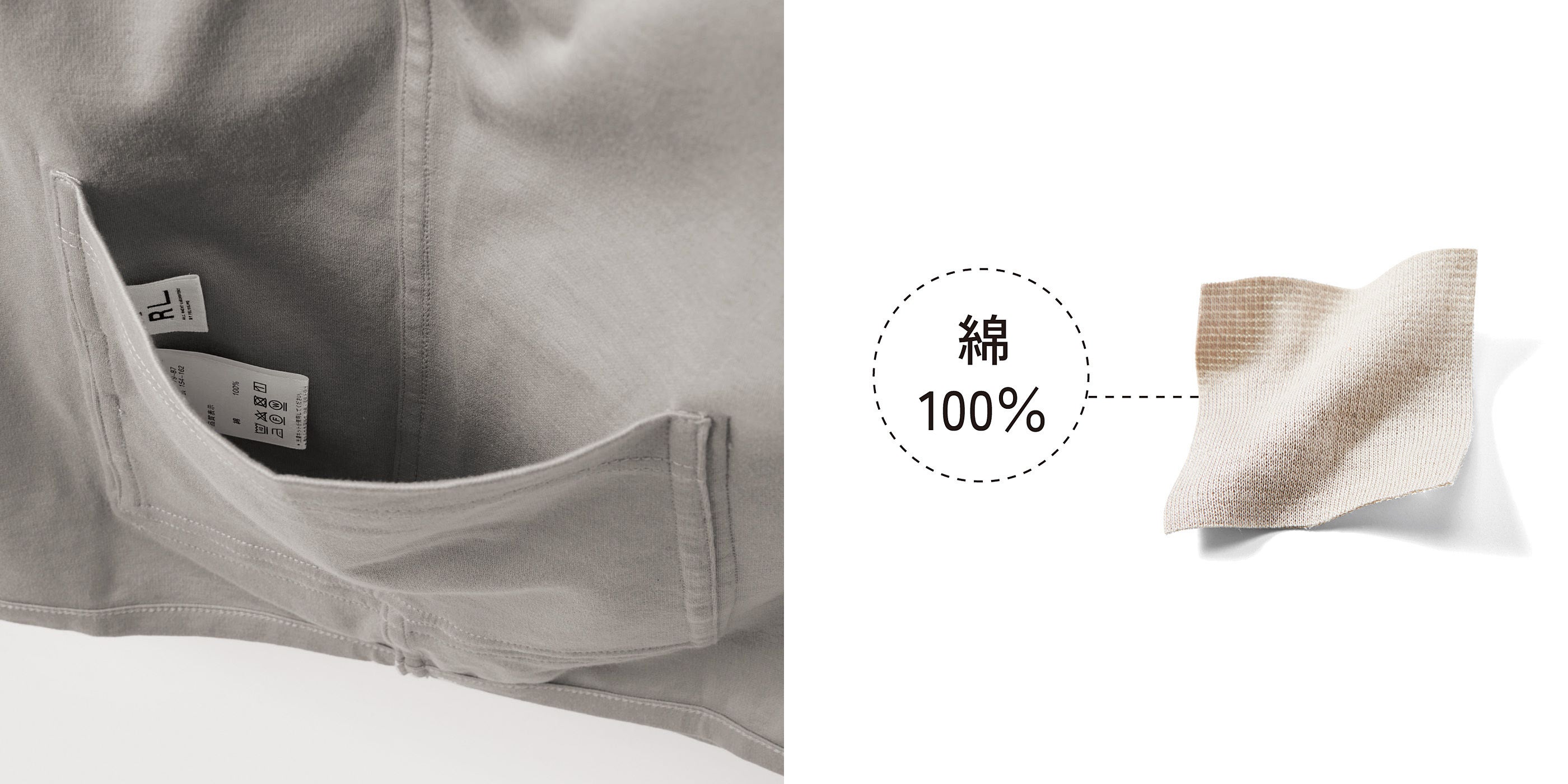 (左)タグは、どう着ても隠れるポケットの内側に。肌にあたることもありません。