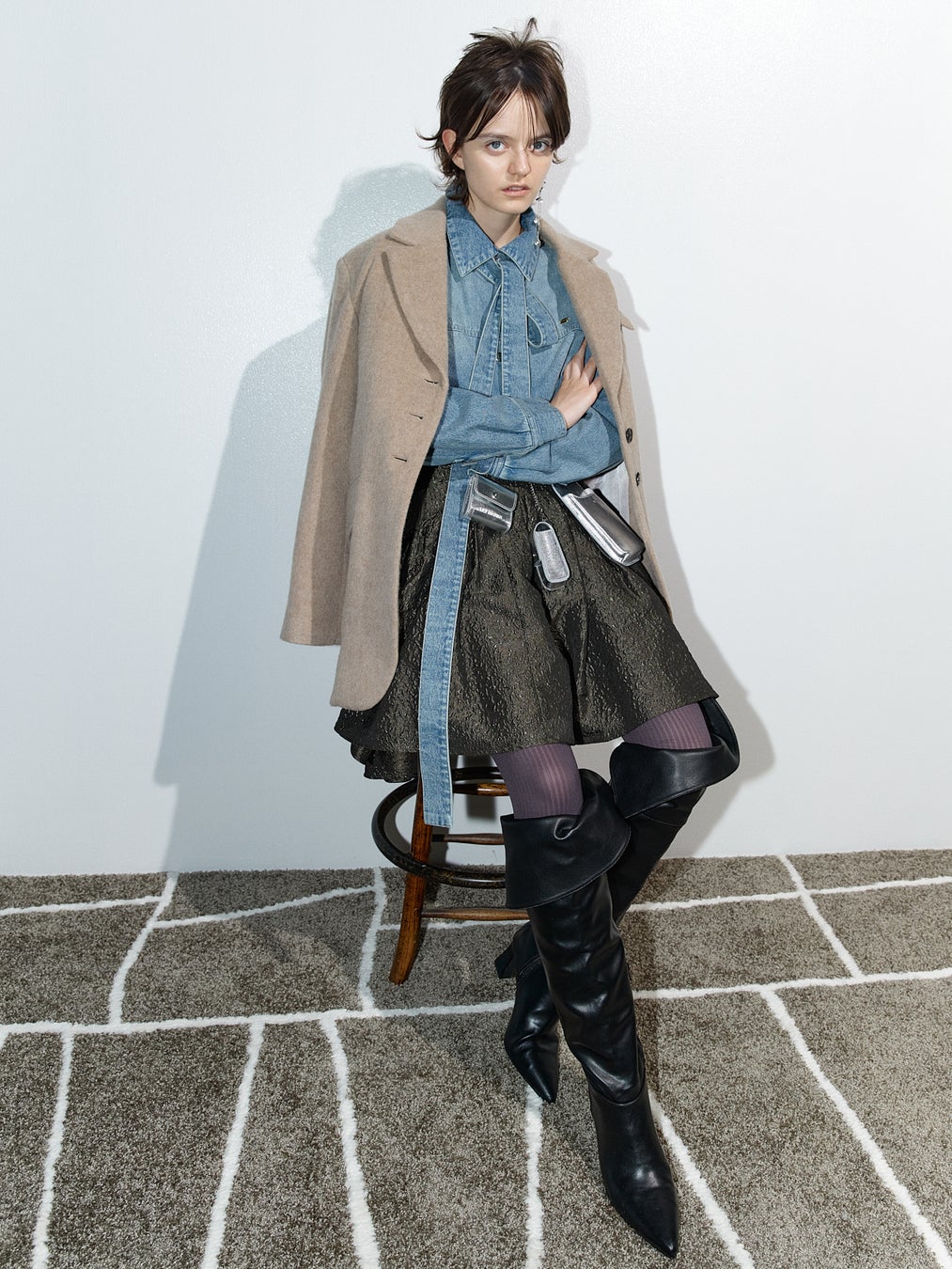 JACKET 24,970yen / KNIT TOPS 20,900yen / SHIRT 15,950yen / SKIRT 15,950yen / BAG 14,960 yen / BELT 5,940yen