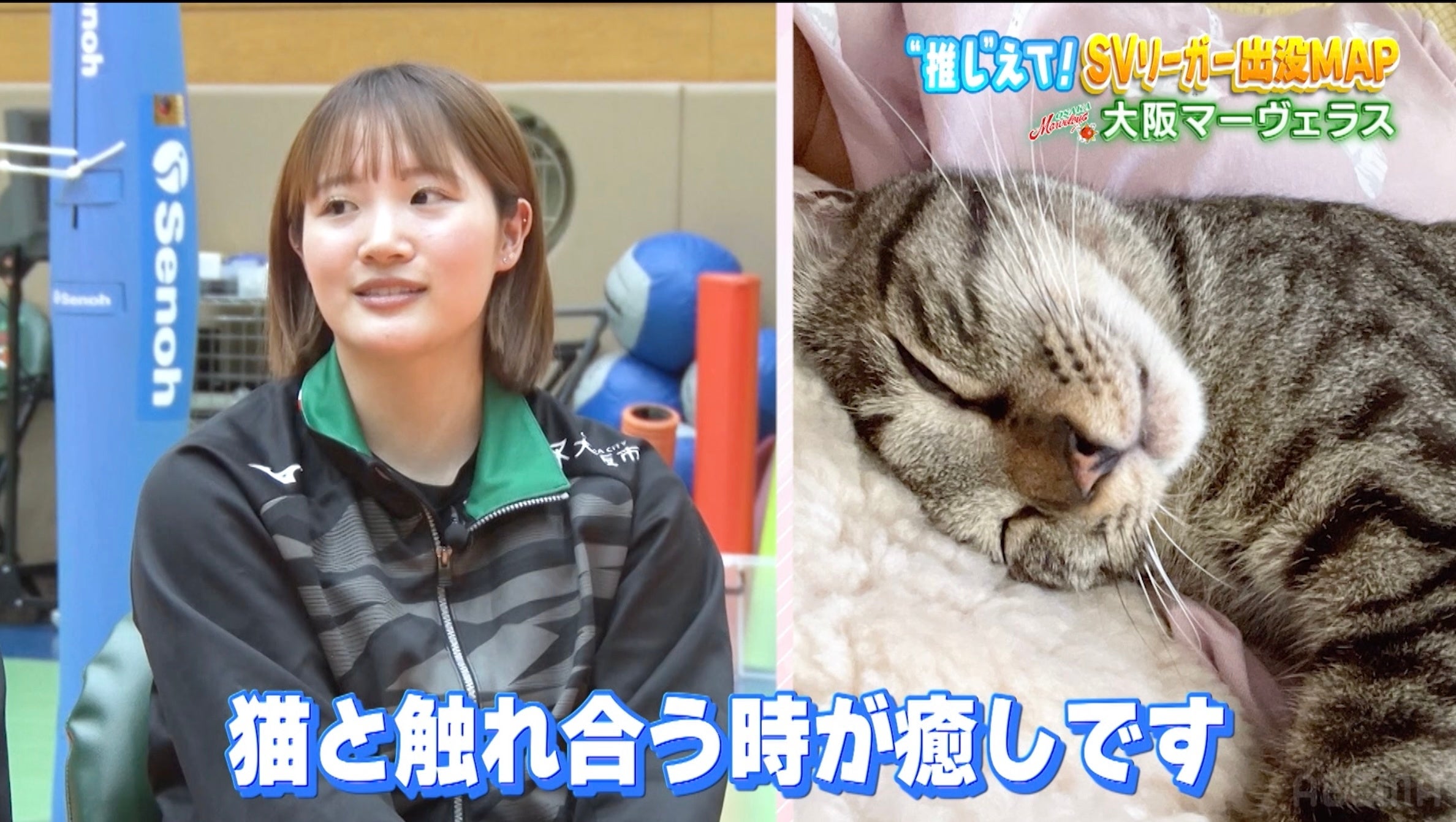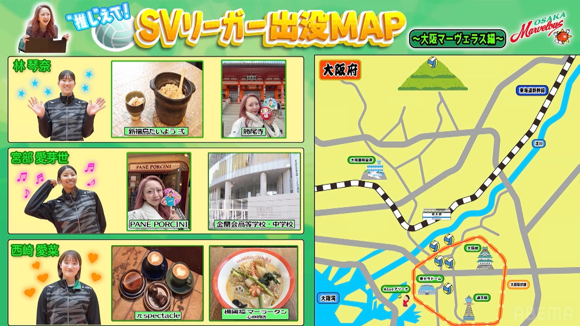 大阪マーヴェラス・西崎愛菜選手がカフェ激戦区の行きつけ店を紹介!風船バレーでみりちゃむがリベロ・西崎愛菜選手にまさかの勝利!?「猫あるある」にツッコミ殺到『SVリーガー出没MAP』