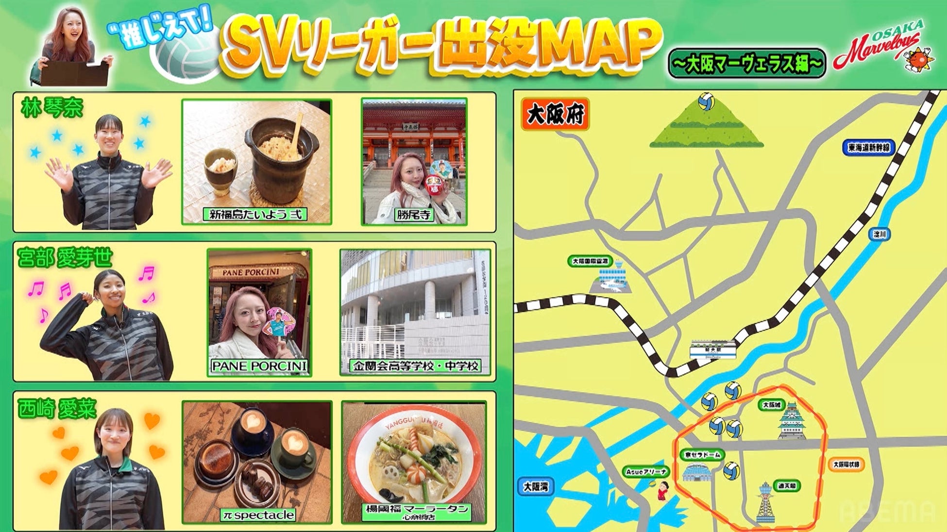 新しい未来のテレビ「ABEMA(アベマ)」は、2026年3月21日(土)に『“推し”えて!SVリーガー出没MAP 大阪マーヴェラス編 vol.3』を放送いたしました。