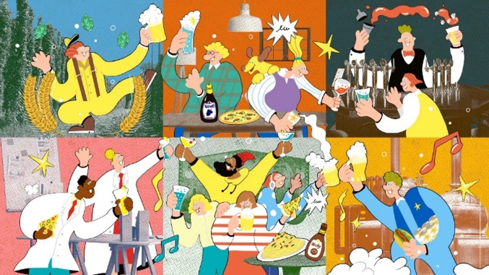 お酒を通じた「新しい体験」、「新たな出会いによるワクワク感」、「お酒を介したつながり」の創造により、世代を超えて、お酒の楽しさ・未来を分かち合う“場”づくりを目指すことを表現し、イラストレーターのMonkey Studioさんの書下ろし作品となります。