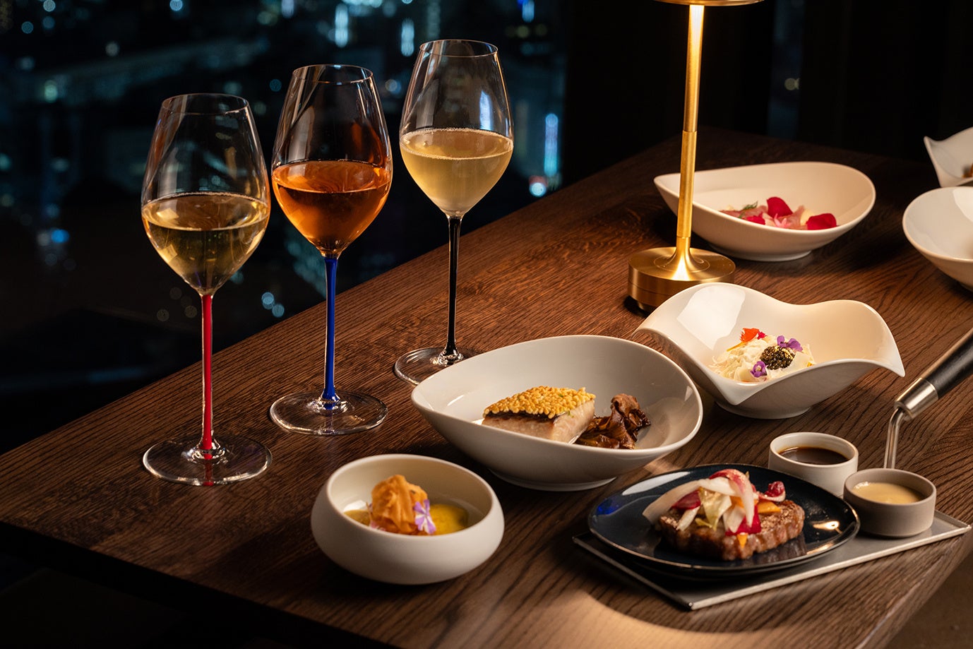 45階からの煌めく絶景とともに、青の光が幻想的なアートが瞬く圧倒的な空間で、シャンパンとBar Bellustarにてご用意する一夜限りのペアリングコースとの出会いのマリアージュをご堪能ください。