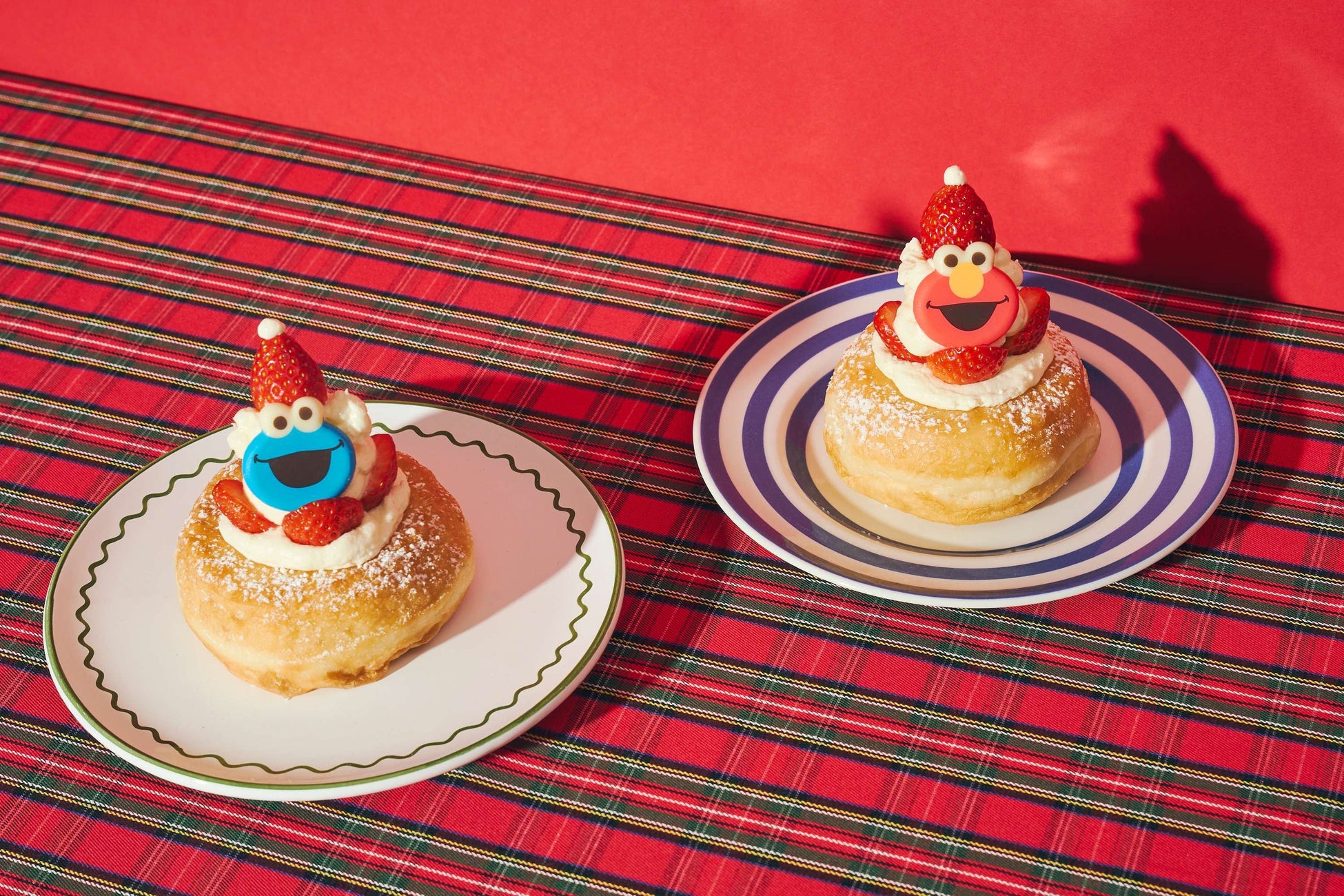 サンタに扮したエルモとクッキーモンスターの顔チョコレートがトッピングされており、食べ応えのあるクリスマスケーキのようなドーナツになっています。
