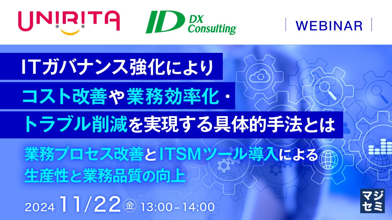 マジセミ株式会社は「ITガバナンス強化によりコスト改善や業務効率化・トラブル削減を実現する具体的手法とは」というテーマのウェビナーを開催します。