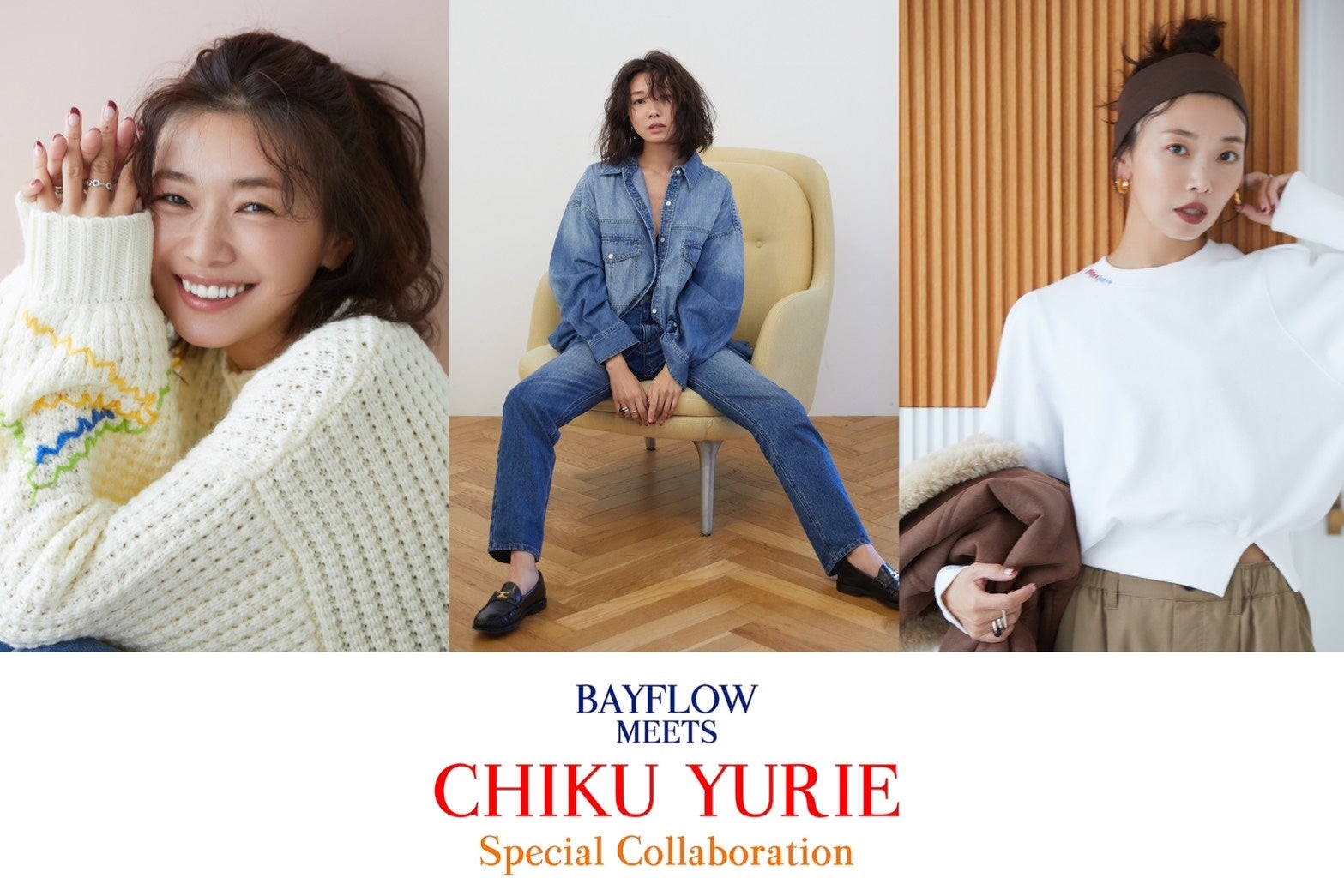 BAYFLOWが、人気インフルエンサー知久友里恵さんとのコラボアイテム全3型のデニム・ニット・スウェットを12月10日(水)より発売