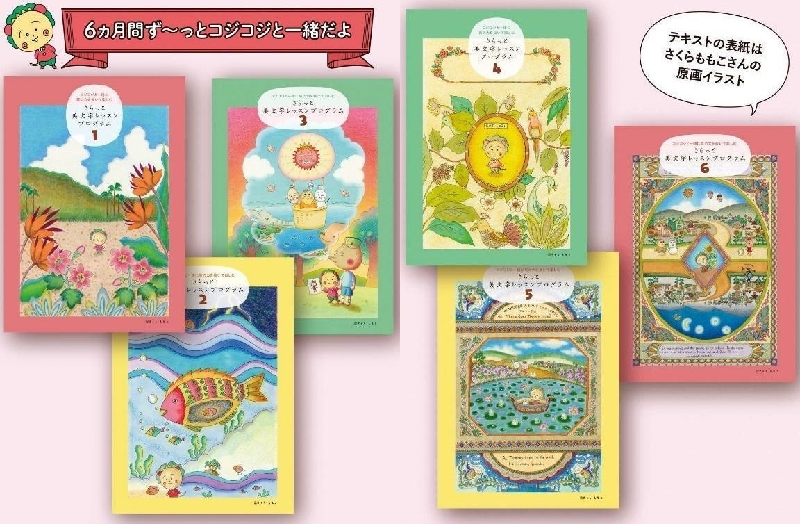 親しみやすく美しい“ほめられ文字”をコジコジと一緒に学びます。毎月届くテキストの表紙には、さくらももこさんの「コジコジ」原画イラストが描かれています。