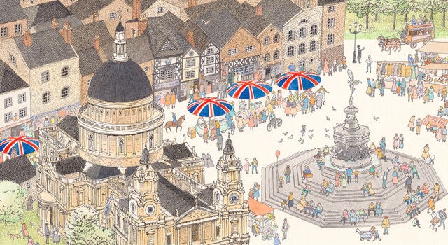 『旅の絵本Ⅲ』〈イギリス編〉の全場面を含め約120点を展示。