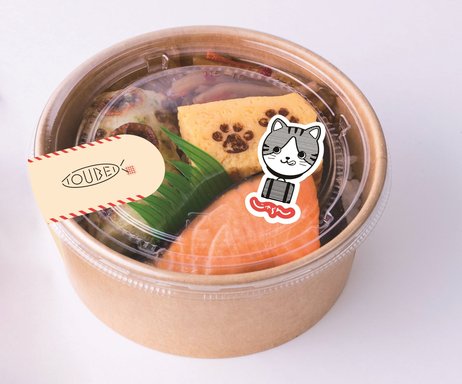 気分やお腹の具合に合わせて選べる“チョイスカップ”のシリーズから、“にゃらん”の肉球をあしらった海苔弁カップが登場。目でも楽しめて、食べてもおいしいお弁当です。※各日限定40折