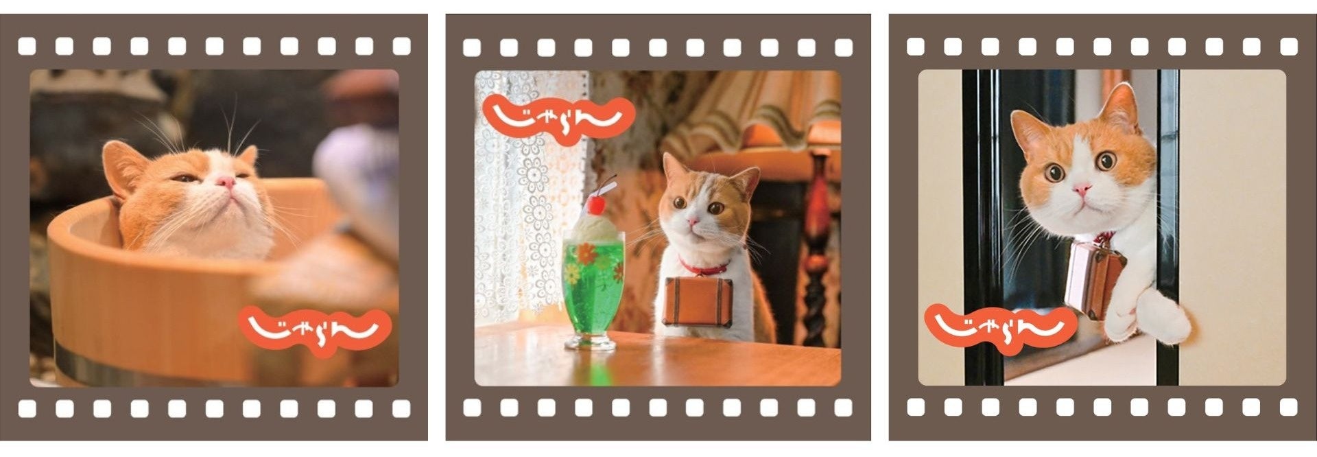 “にゃらん”の旅の思い出がつまったフィルム仕立てのオリジナルステッカー。イベント期間中、対象ショップにてフェア商品を購入の方に1点お渡しします。
