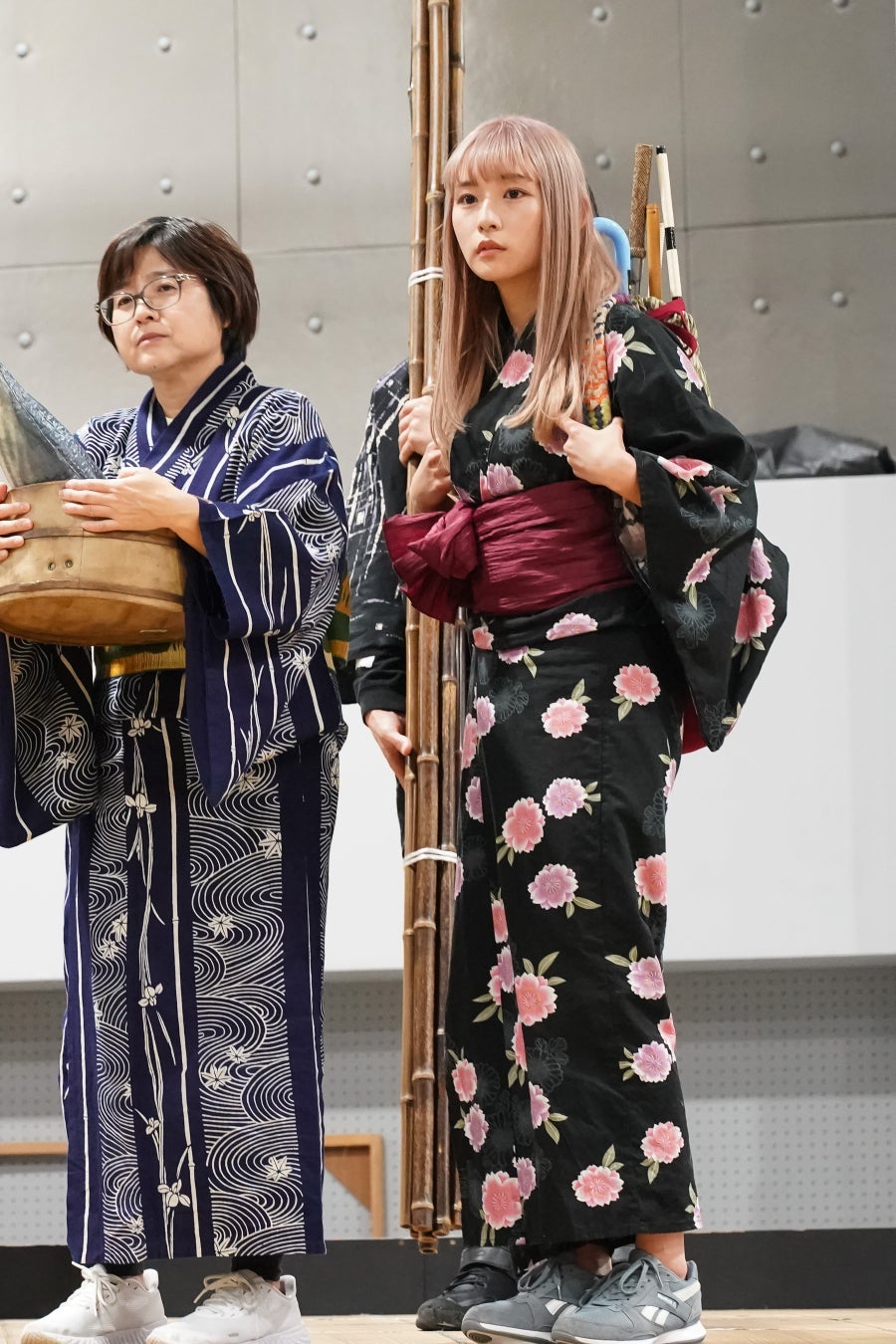 一転、次に披露されたのは、千里眼の瞬太郎(和田雅成)、常陸のお蝶(秋山菜津子)、オジキ(山本亨)が登場する、第三場「八乙女の鉄火場」の緊張感漂うシーン。妖艶なお蝶の歌声が、博打に負けまくるヤクザたちを逆撫でするように響き渡り、一触即発の緊張感が場を支配する。「イカサマだ!」と騒ぎ立てるヤクザに対して、切り掛かる指示をオジキにする瞬太郎。その冷酷無情なクールさはゾクゾクするほどかっこいい! メインの登場人物が現れる、前半の見どころの一部だけの披露でしたが、静と動のコントラストに引き込まれ、取材陣は本番への期待感に包まれていました。