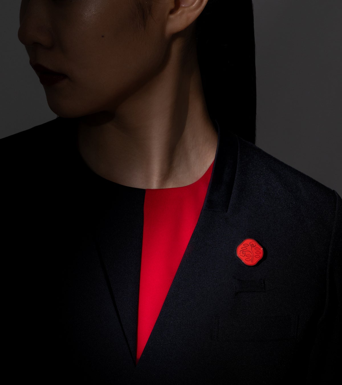 「KASANE」のデザインコンセプトは、何層にも重ねることで生まれる洗練された動きに着目し、直線と曲線の美、隠された内面の強さ、古来の芸能伝統における「間」を表現しています。このデザインは、新進気鋭のデザイナー、浅川喜一朗氏(sssteinデザイナー)が手掛けました。浅川氏の作品は、シンプルでミニマルなデザインが多く、グローバルブランド「SHISEIDO」との日本の美と革新を体現する共通点から今回のコラボレーションが実現しました。SHISEIDO PBPは胸元にブランドのアイコンである花椿のブローチを身に着け、ブランドハウスのホストとして店頭でお客さまをお迎えします。
