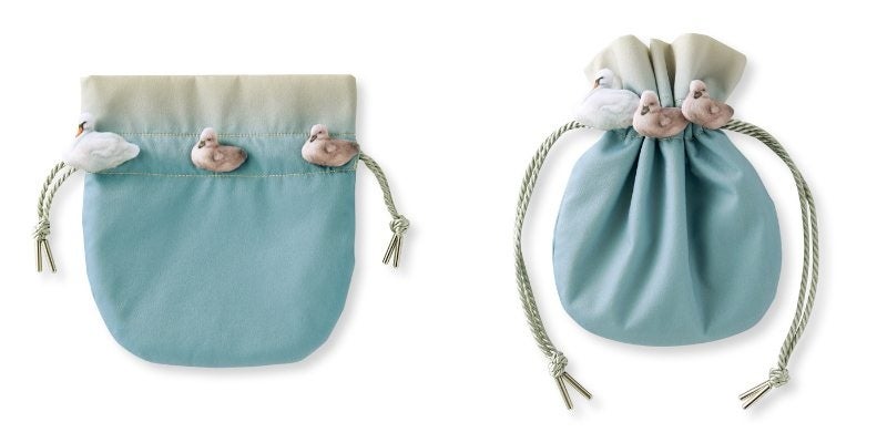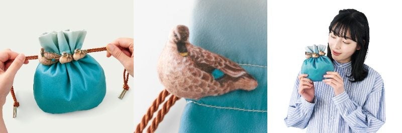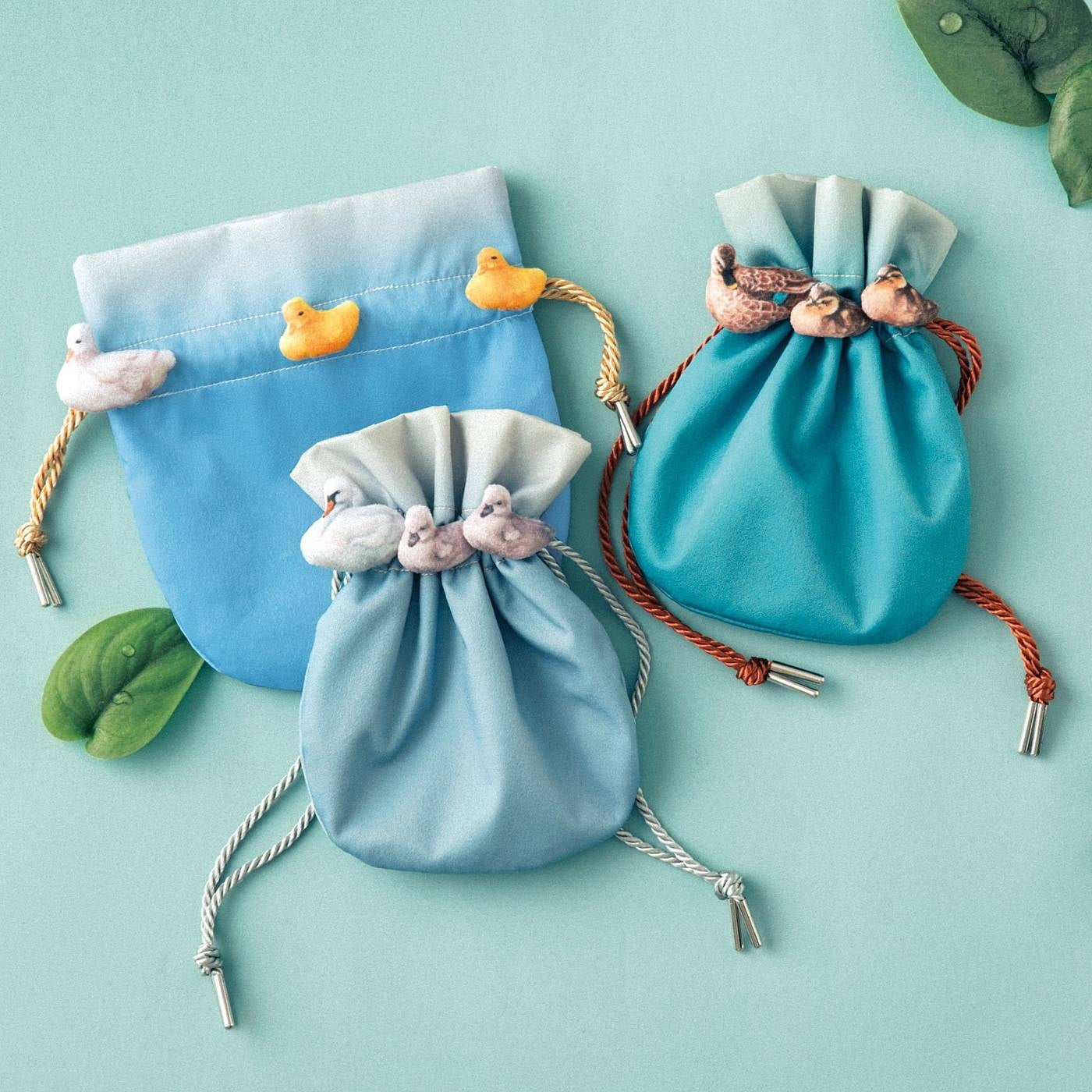 水鳥の親子のほほえましい様子を再現した「ひもをしぼるとヒナが追いつく 水面を泳ぐ水鳥親子のきんちゃく」が、フェリシモ「YOU+MORE!」から誕生