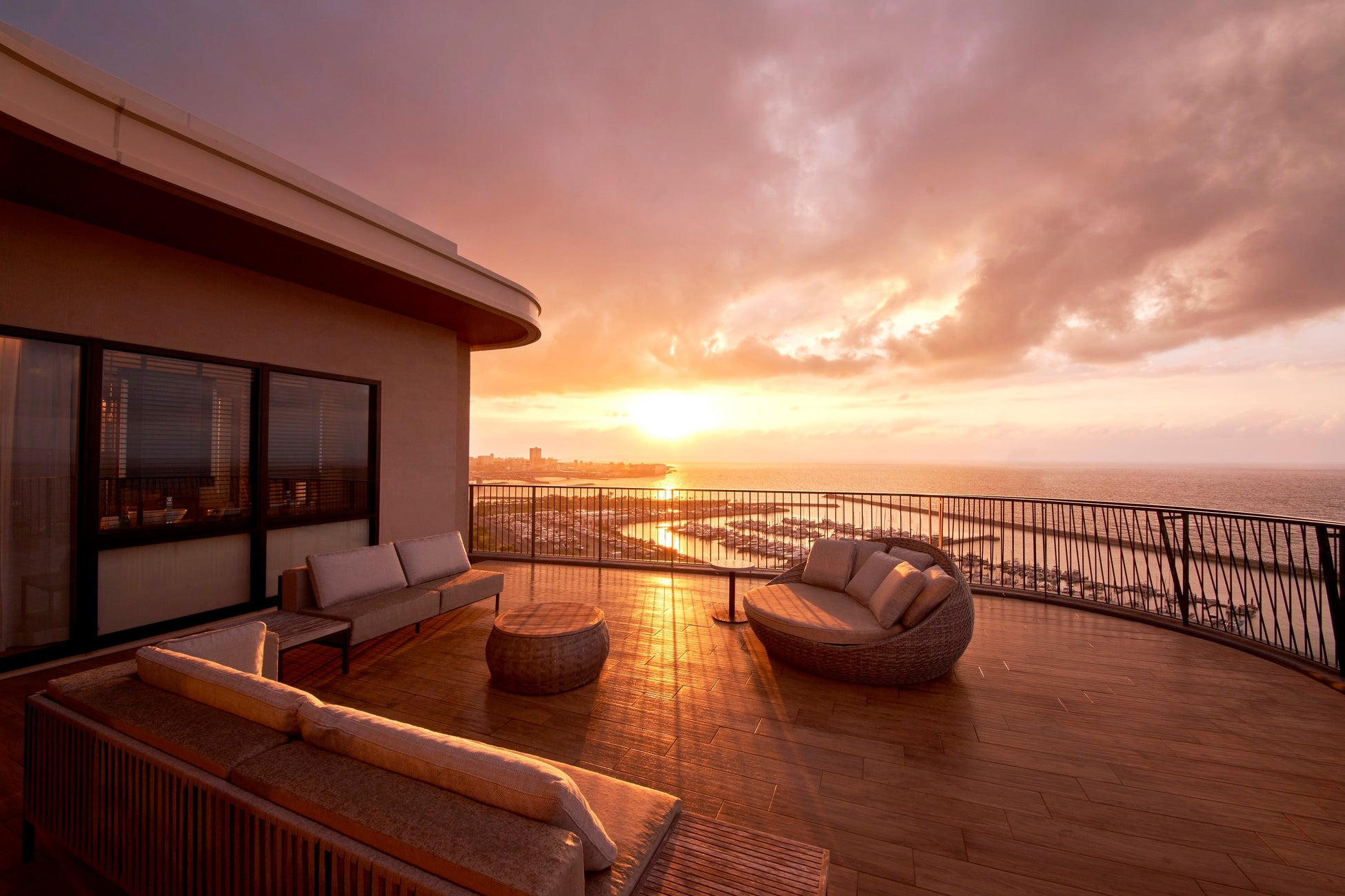 その中でも象徴的な役割を果たしているのは14Fのクラブラウンジ「UMIKAJI」です。クラブフロアにご滞在頂くお客さまのご到着からご出発まで専用のラウンジ、そしてインフィニティプールから眺められる絶景のサンセットは、リピーターのお客さまも多く、好評をいただいております。