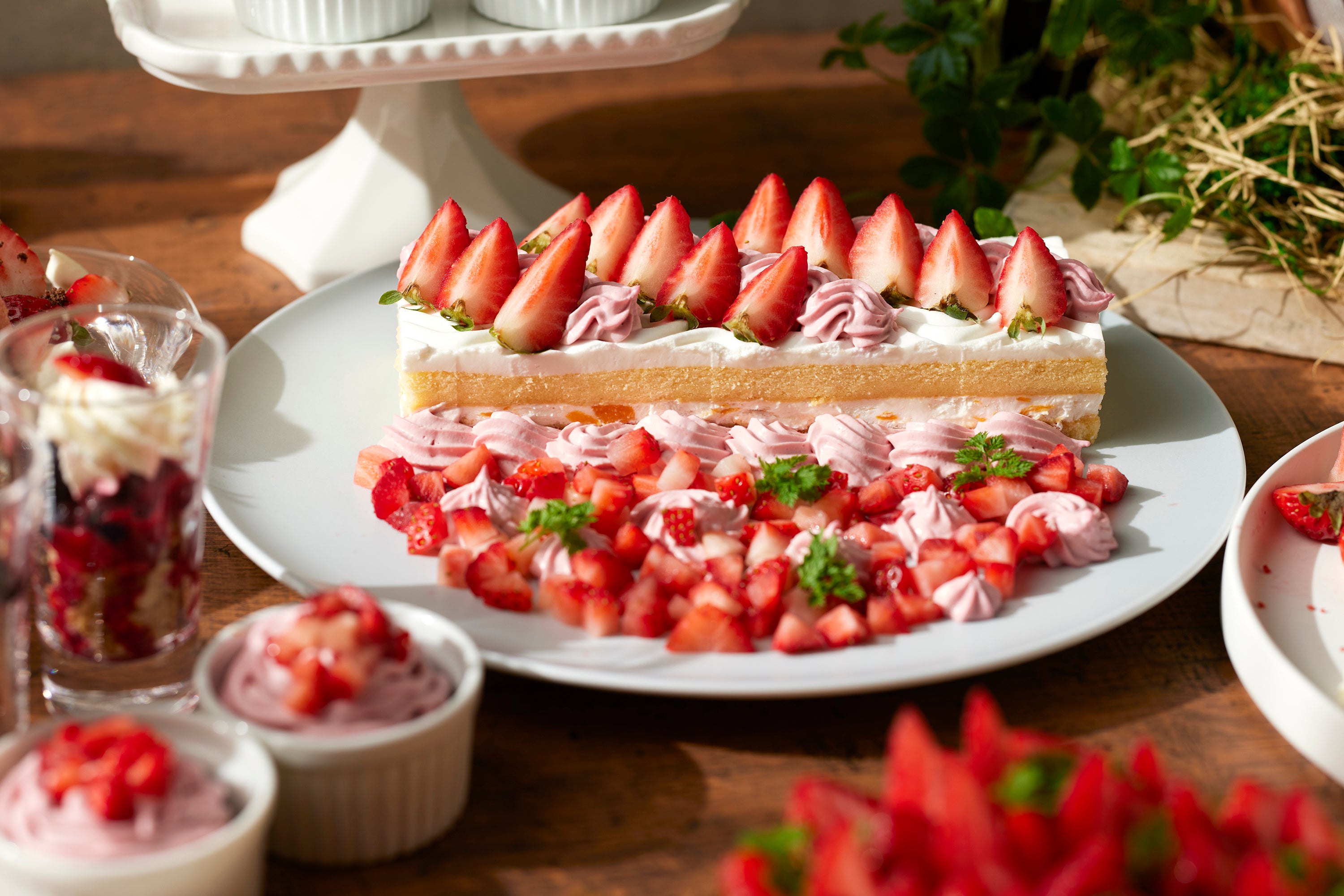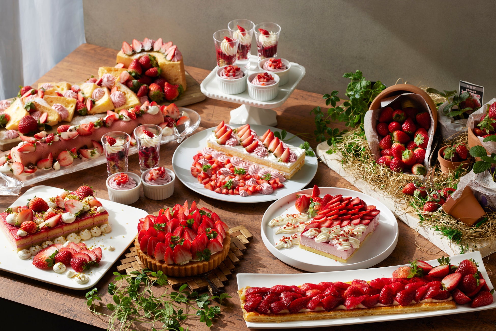 シェフが厳選した6銘柄のいちごを食べ比べできる「いちご狩り」など、華やかないちごデザートブッフェや、シェフこだわりのお料理を堪能。