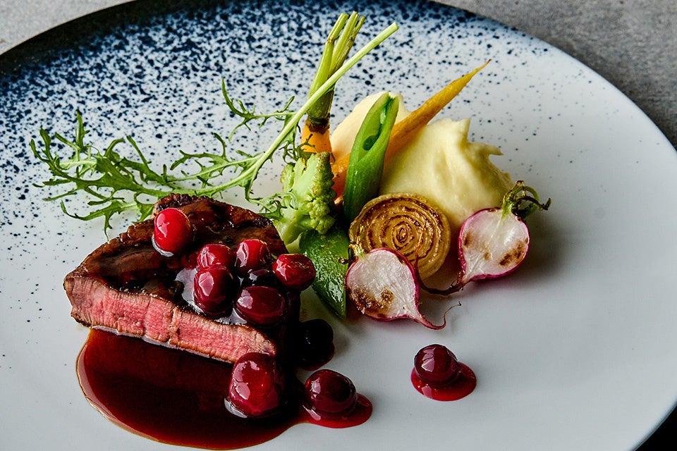 ・メインディッシュ:オーストラリア産ヒレ肉のグリル 真っ赤なビーツのアクセント