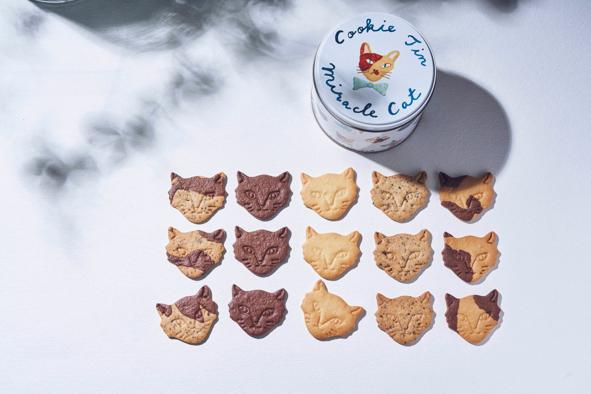色々な柄の手づくりネコクッキーが入った“神様のいたずら”ネコクッキー缶。