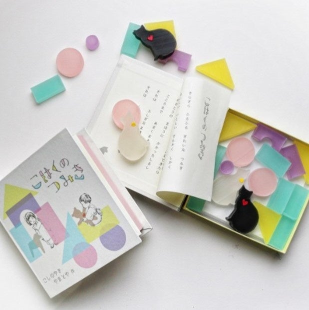 パッケージにもねこをあしらった一品となります。黒猫、白猫が各1つずつ、他つみきのパーツで合計15個入となります。