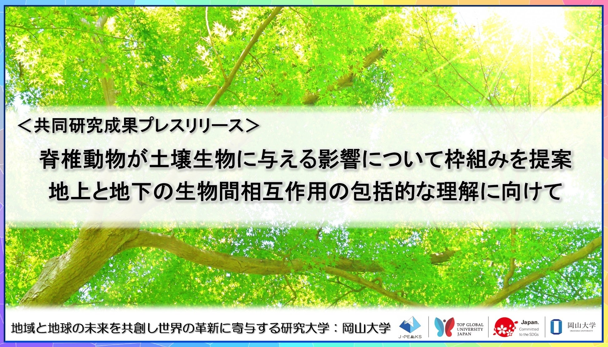 脊椎動物が土壌生物に与える影響について枠組みを提案:地上と地下の生物間相互作用の包括的な理解に向けて〔高知大学,北海道大学,森林研究・整備機構森林総合研究所,岡山大学,東京大学,福井県立大学〕