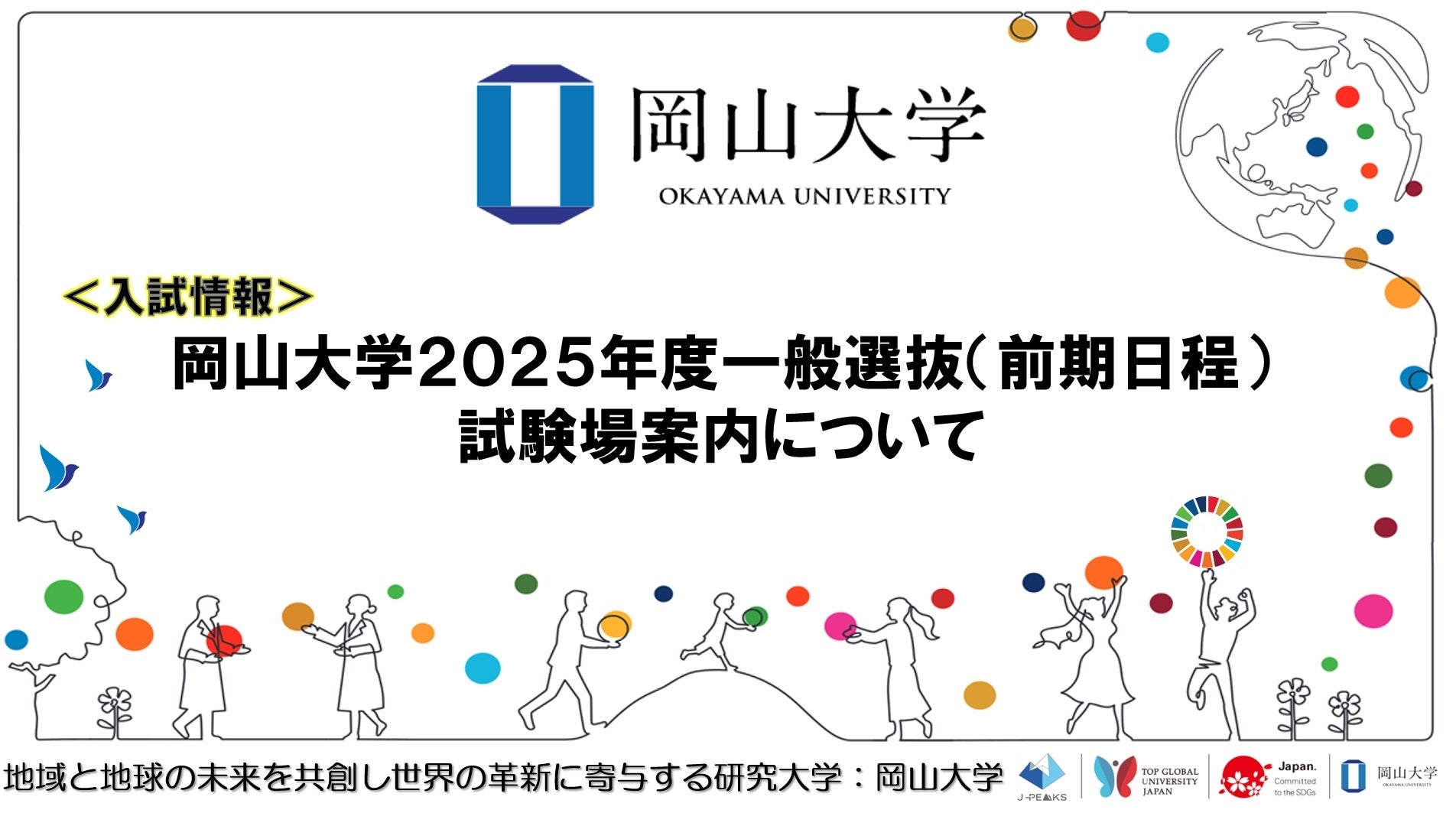 国立大学法人岡山大学(本部:岡山市北区、学長:那須保友)は2025年度一般選抜(前期日程)試験場案内を、2025年2月12日より以下の岡山大学ホームページで公開しました。