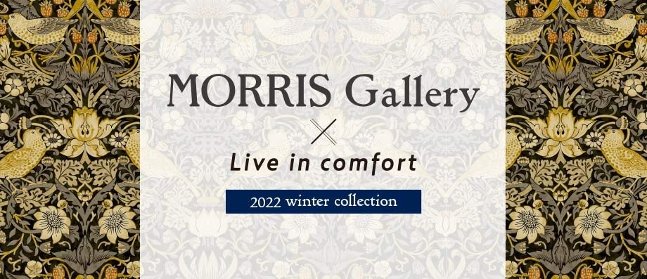 19世紀のイギリスで「アーツ・アンド・クラフツ運動」 を牽引し、モダンデザインの時代を切り開いたウィリ アム・モリス。工芸家、画家、詩人、出版人、社会主義思想家としても活躍しました。彼が特に力を注いだのは、自然の樹々や草花をモチーフにしたテキスタイ ルデザイン。掲載のモリス・ギャラリー「いちご泥棒」柄の商品は、英国 サンダーソン・デザイン・グループ(株)よりライセ ンスを受けて(株)フェリシモで企画したものです。