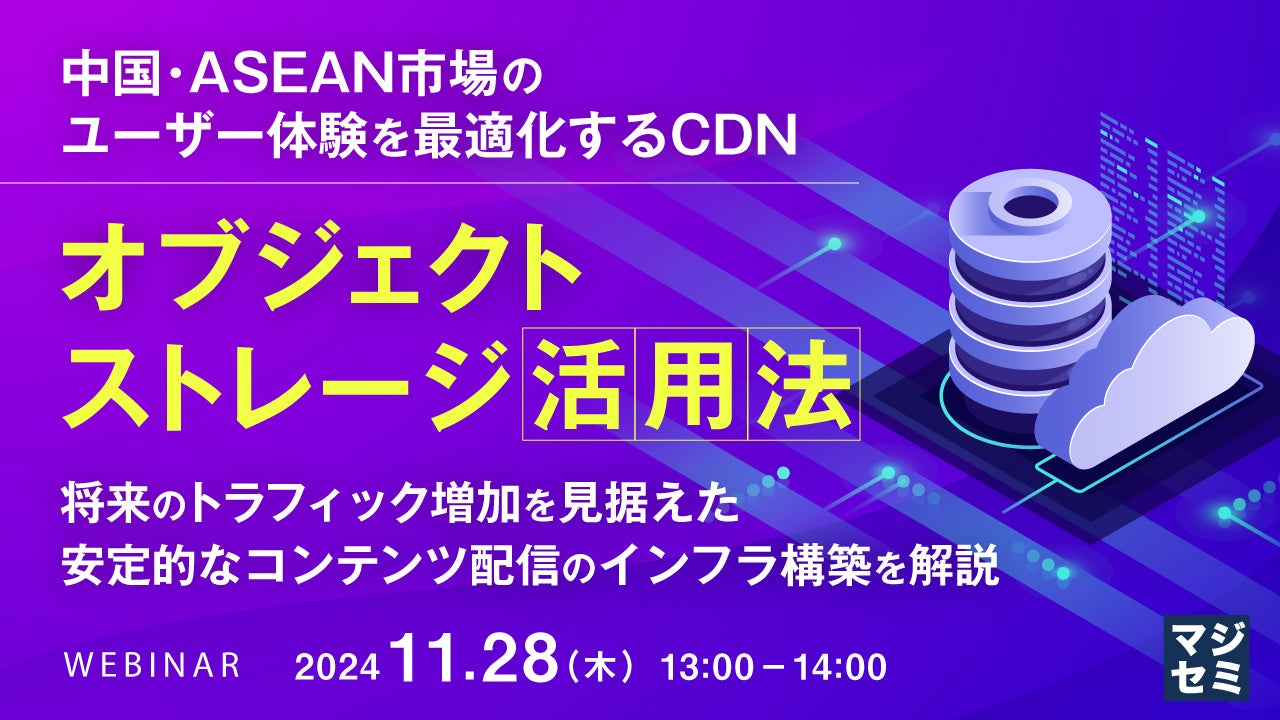 マジセミ株式会社は「中国・ASEAN市場のユーザー体験を最適化するCDN、オブジェクトストレージ活用法」というテーマのウェビナーを開催します。