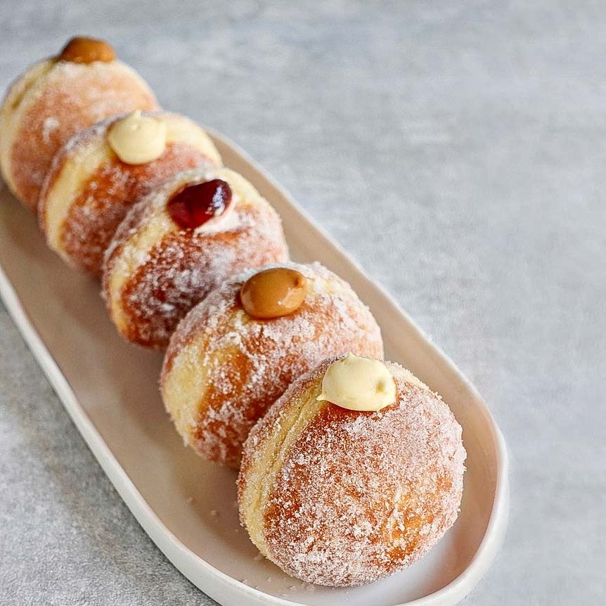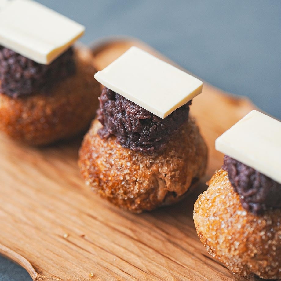 日本を代表するフランス菓子店<パティシエ・シマ>と、フランス菓子をベースにした焼菓子を手がける<ビスキュイトリー シュクルリ>とのコラボレーション。エアリーでしっとりした食感のドーナツに、パティシエが作るフランス菓子をベースとしてリッチな味わいの特選カスタードクリームを絞りました。