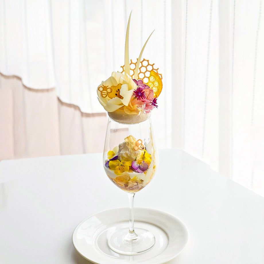 養蜂場を営む<ドレス>三田正樹氏の実家のはちみつをテーマに、<DRESS MITA MASAKI LAB.(ドレス ミタ マサキ ラボ.)>と<amazoonia(アマゾニア)>が共同製作したパフェ。「はちみつは花から」に着目し、ロイヤルゼリーやプロポリス、コムハニー、ビーポーレンなどのミツバチが採る素材を使用。フルーツやチョコで彩る春の花畑をイメージしてます。