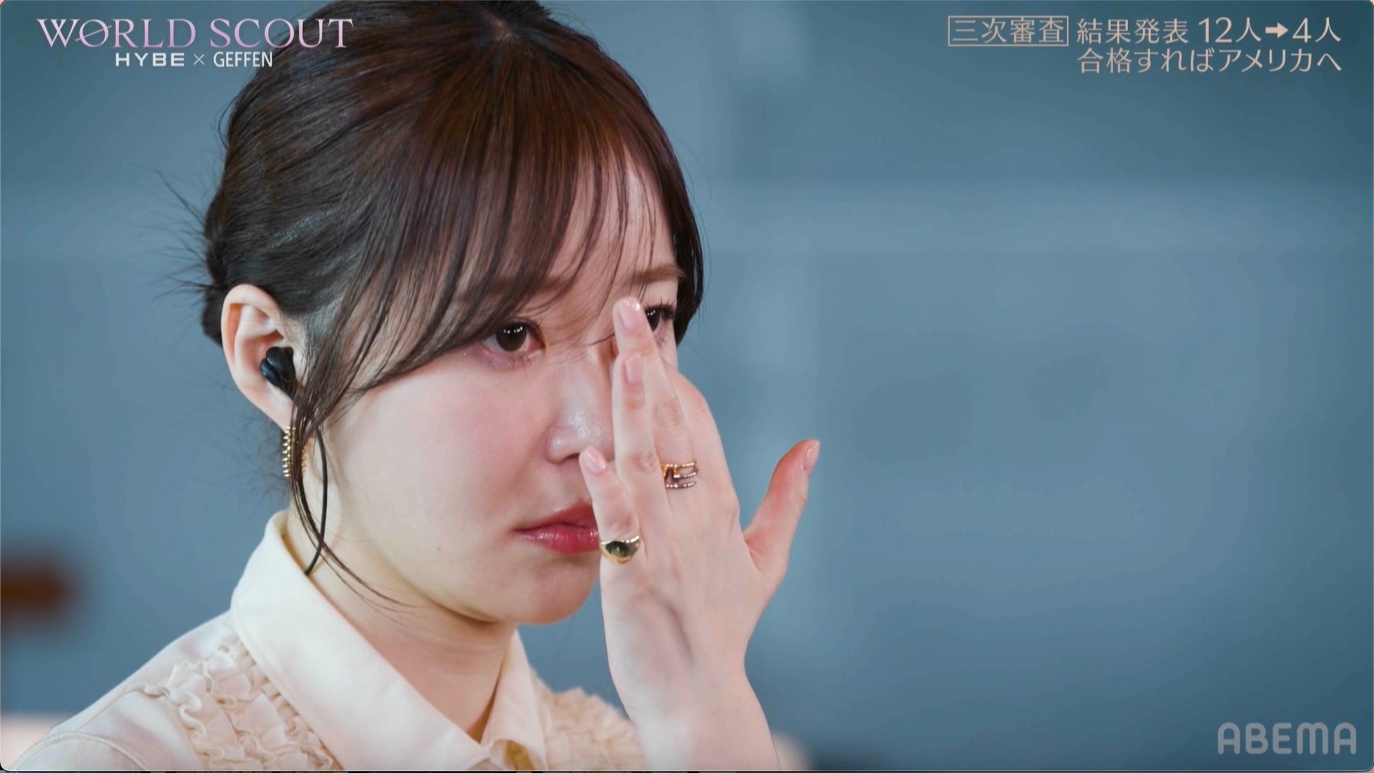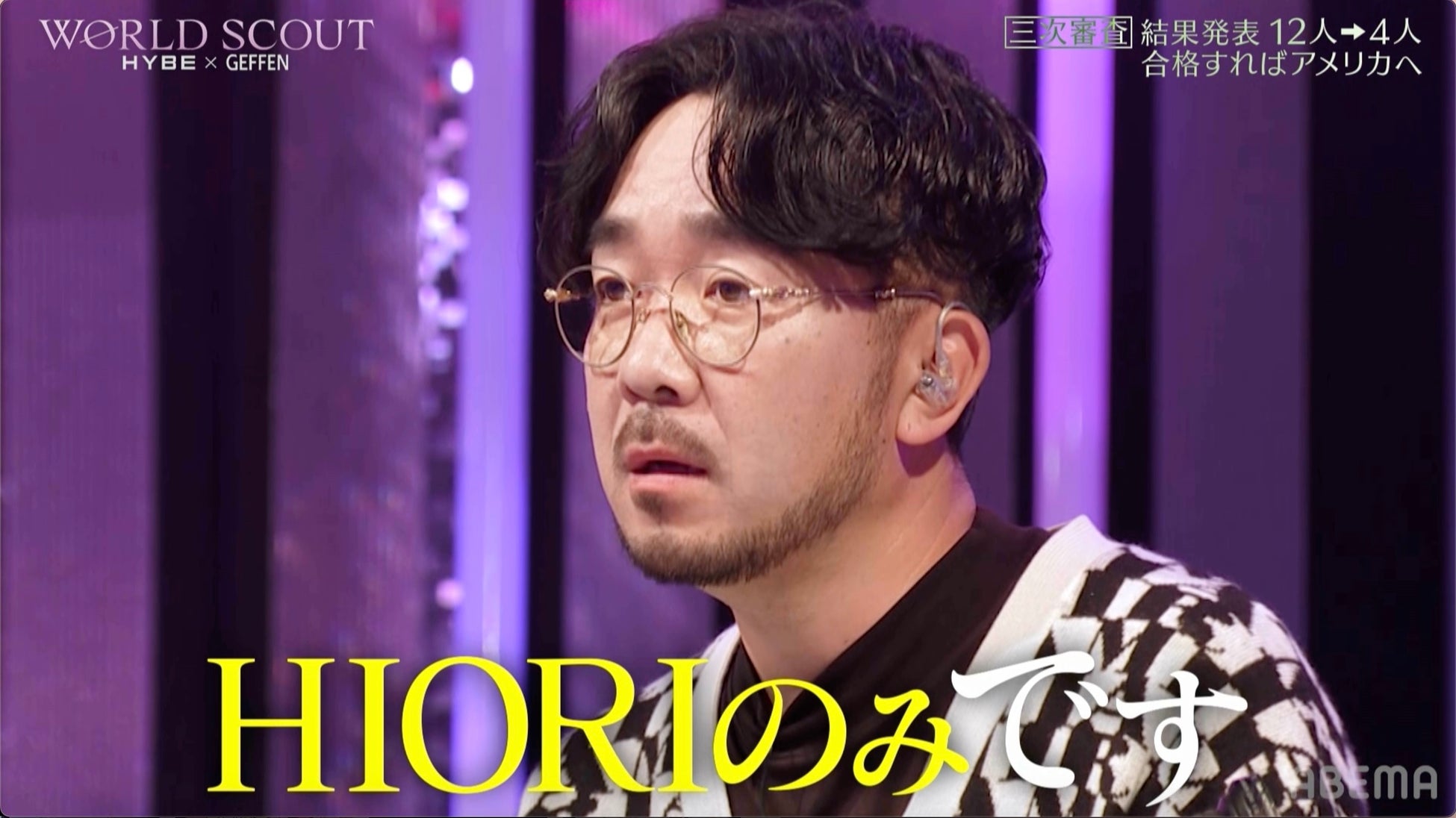 番組の後半では、いよいよアメリカ行きを決める3次審査の合格者4名が発表に。審査員のソン・ソンドゥクは1番にHIORIの名前を挙げ、3次審査のパフォーマンスについて「これまで見られなかった姿を検証できる素晴らしい舞台だった」とコメントします。そしてAチームからは合格者がHIORIのみだと明かされると、コーチ陣一同は大号泣し、指原も「本当残酷…」と呟きました。HIORIは「嬉しいけど複雑な気持ち、チームのおかげで選ばれたので誰よりも頑張って前進したい」と口にしました。
