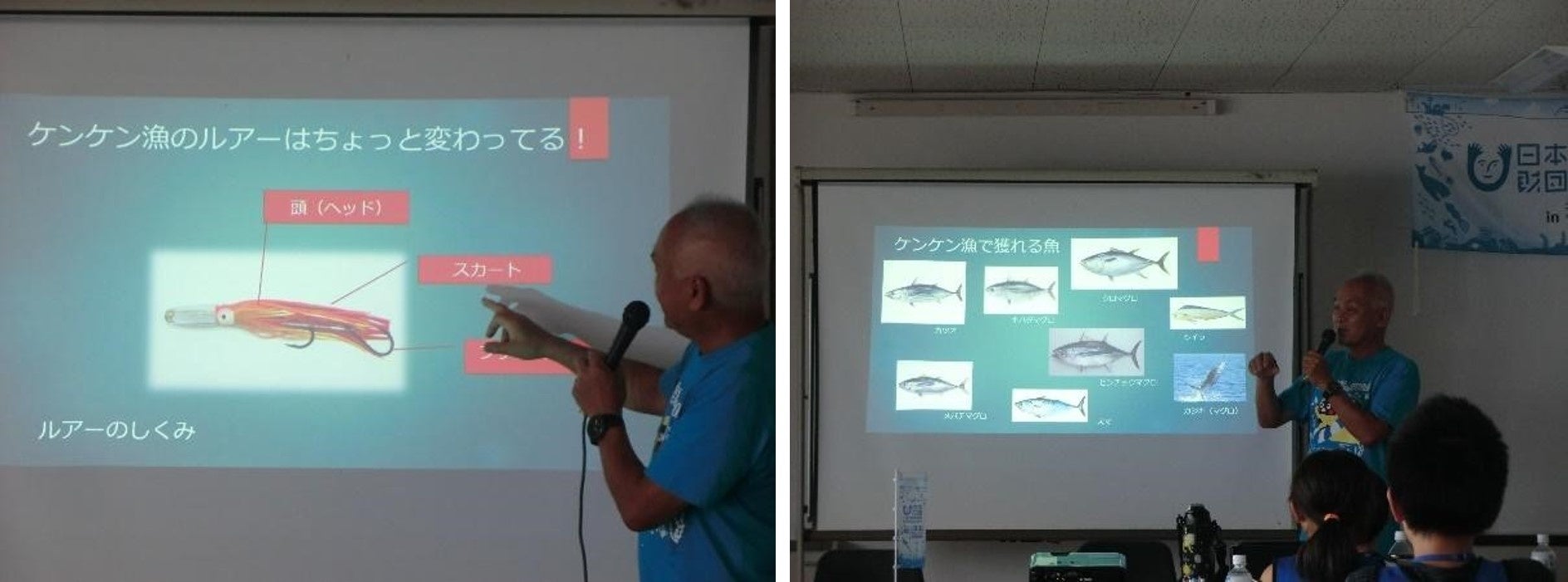 最後に宇井事務局長は子ども達に向けて、「魚はとても温度の変化に弱い生き物であり、1℃や2℃の差で死んでしまう。みんなが大人になった時も美しい海であるために何ができるかを考えてほしい」と語ります。子ども達からは、「ケンケン漁でいろんな魚が獲れることが分かった」、「串本の海を守るためごみを出さない」などの感想が挙がっており、海を身近に感じ、海の未来について考えるきっかけとなりました。