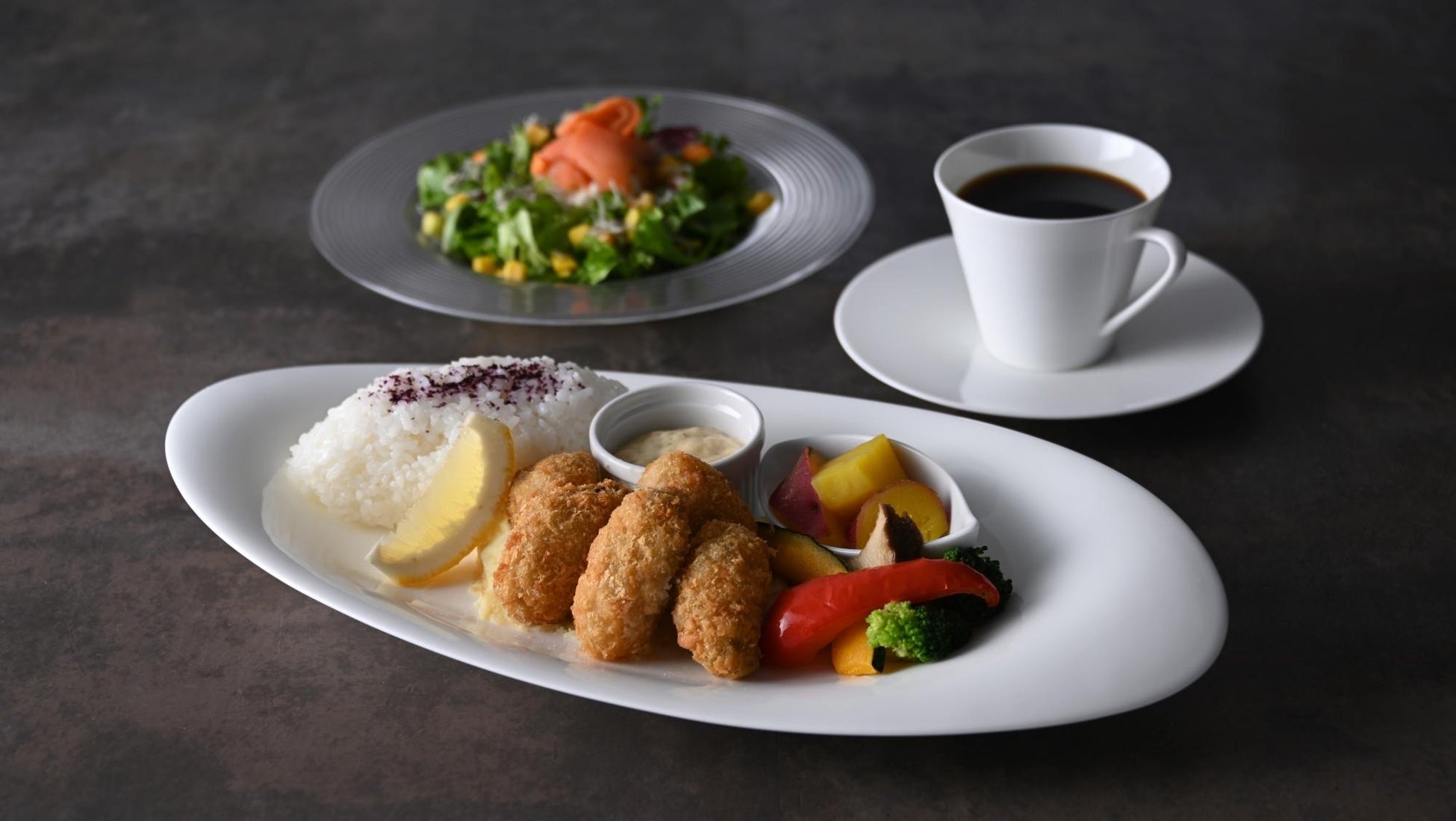・牡蠣フライプレート(牡蠣フライ・温野菜・さつま芋レモン煮・マッシュポテト・ご飯)
