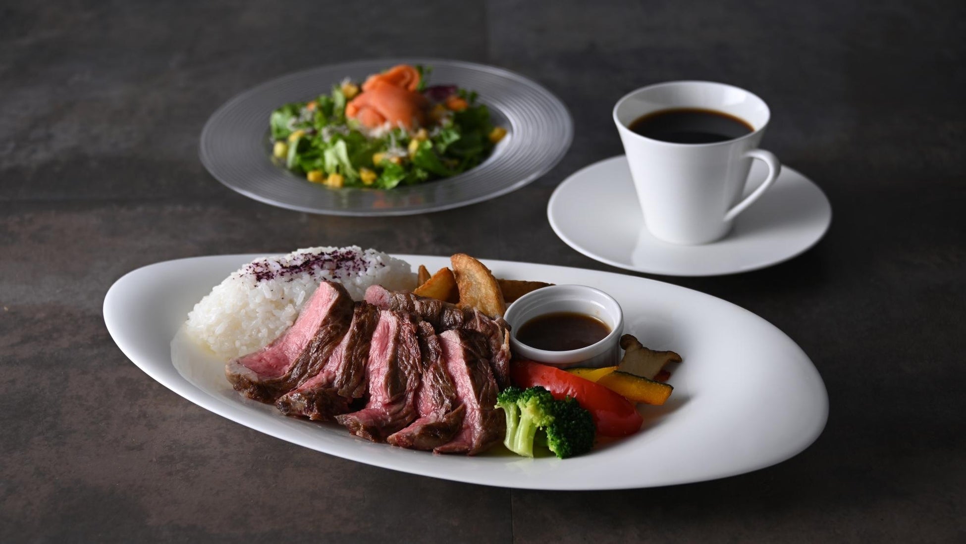 ・ステーキプレート(牛肉ステーキ和風おろしソース・ポテトフライ・温野菜・ご飯)