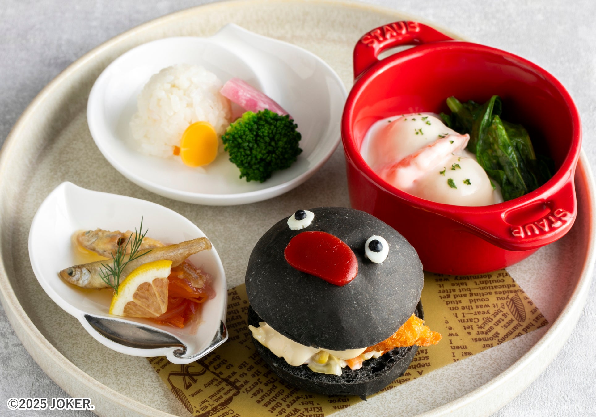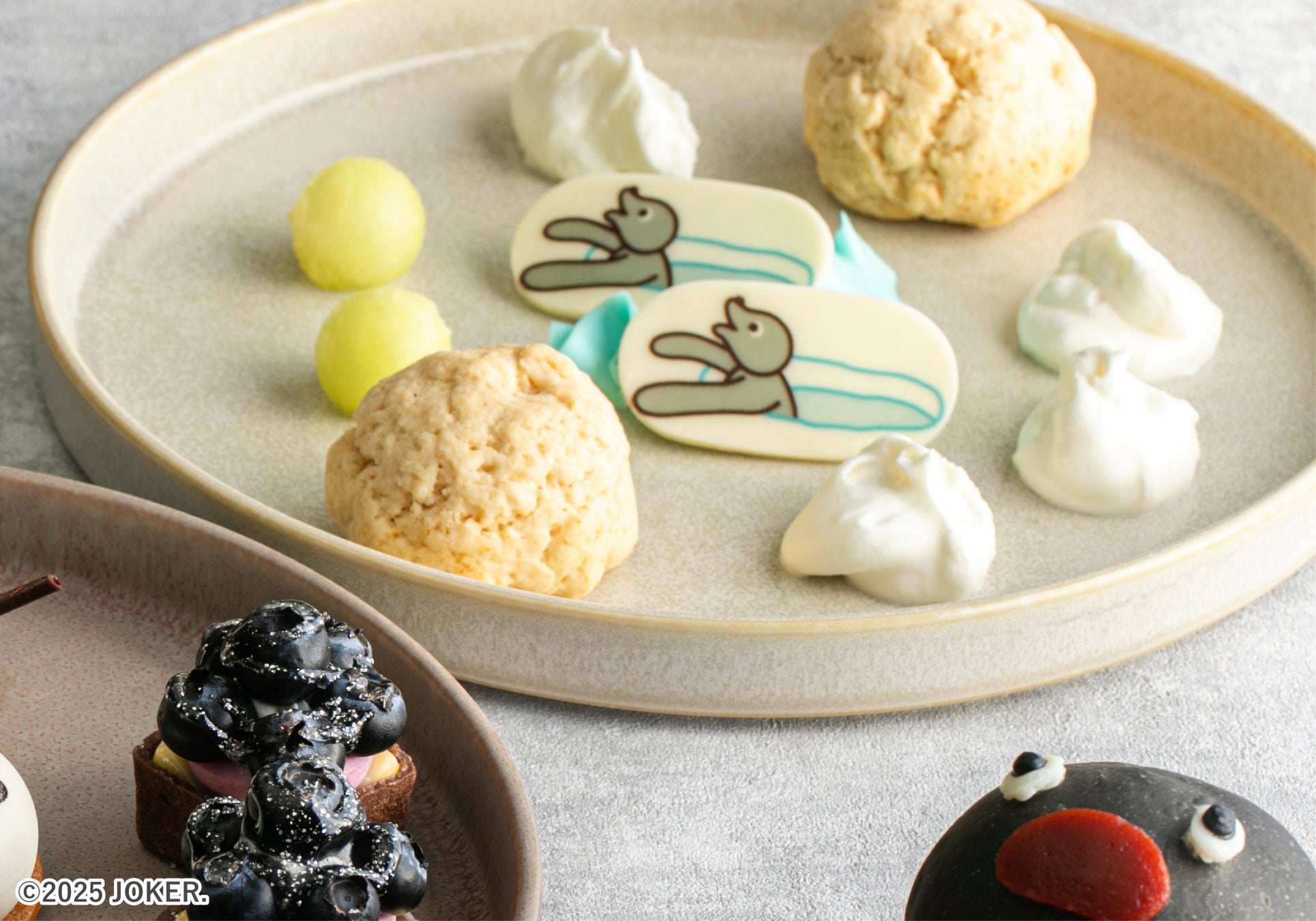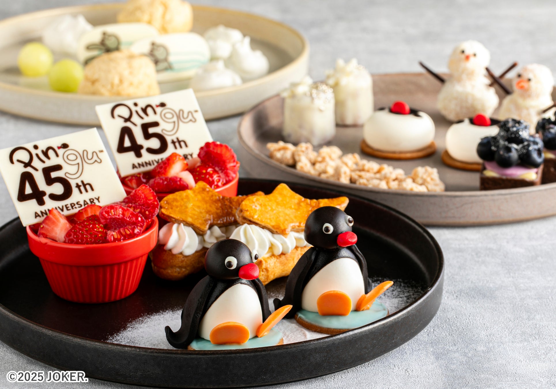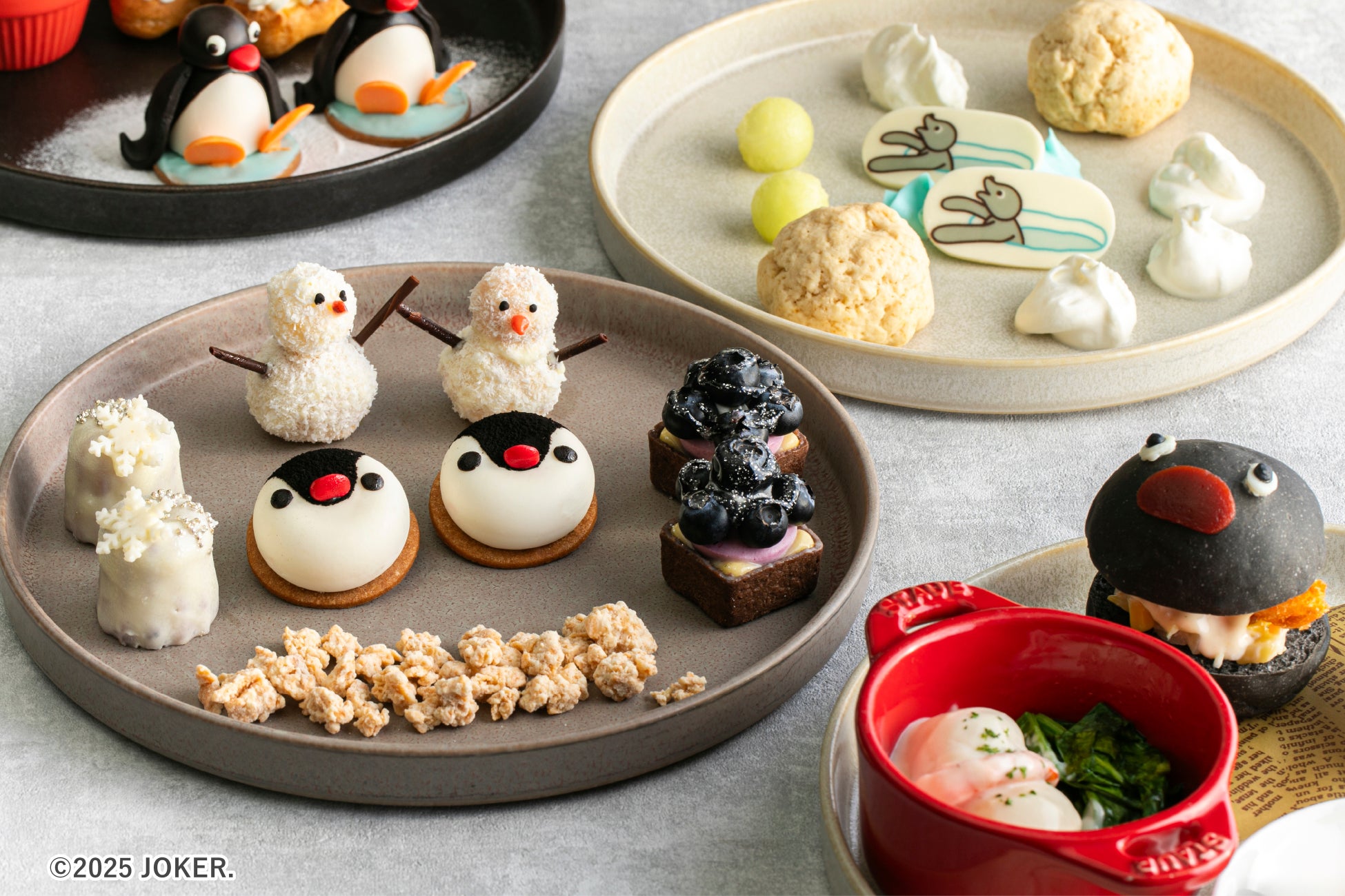 アフタヌーンティーは、おちゃめなピングーを再現したホワイトチョコレートのムース“ピングームース”や、ピングーの妹ピンガの可愛らしいお顔の形の“ピンガのレアチーズムース”、アザラシのロビが海を泳ぐ様子をイメージした“イグルー風スコーン ロビのブルークロテッド風クリーム”など、愛らしいキャラクターたちがいっぱいの賑やかで楽しいスイーツの数々をご提供。また、黒のバンズでピングーを表現したフィッシュバーガー“ピングーフィッシュバーガー”や、作中に登場するメニューを再現した“パリジャンポテトと海老のフリカッセ”など、セイボリーでもピングーの世界観を味わっていただけます。
