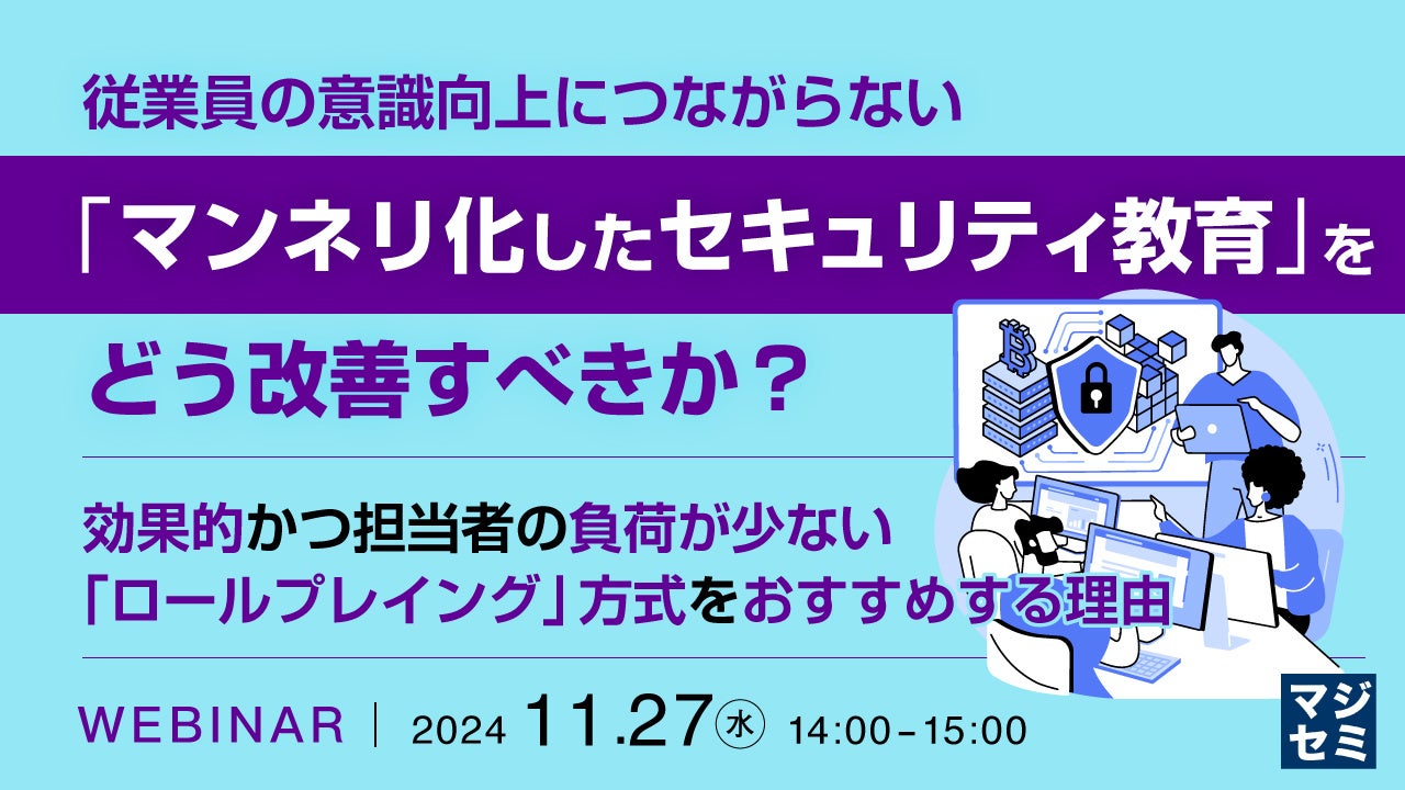 マジセミ株式会社は「従業員の意識向上につながらない「マンネリ化したセキュリティ教育」をどう改善すべきか?」というテーマのウェビナーを開催します。