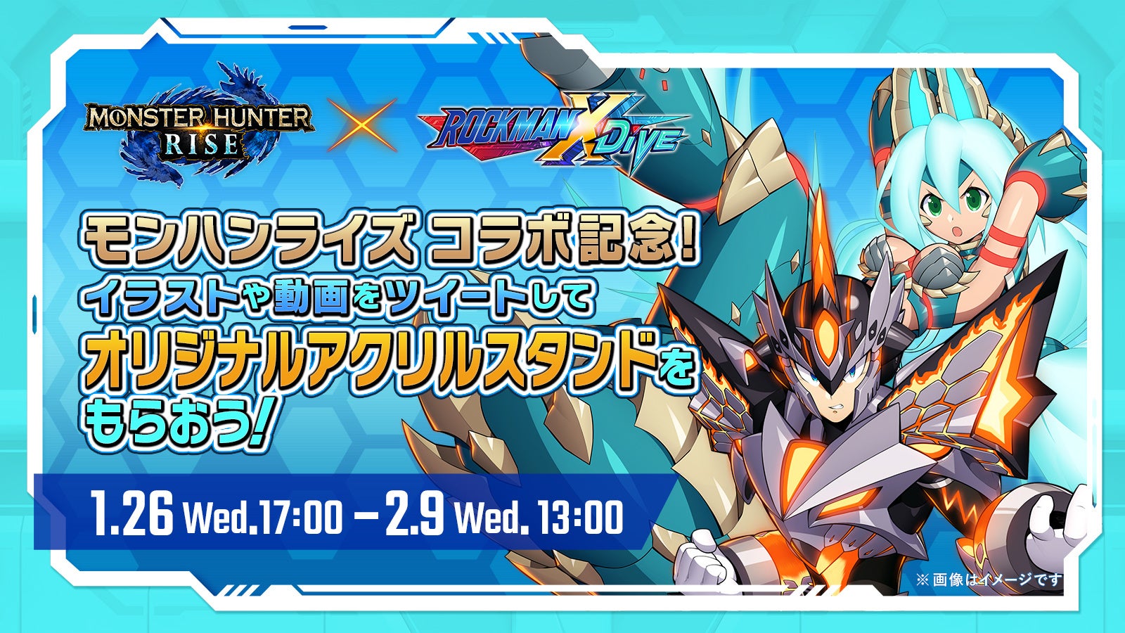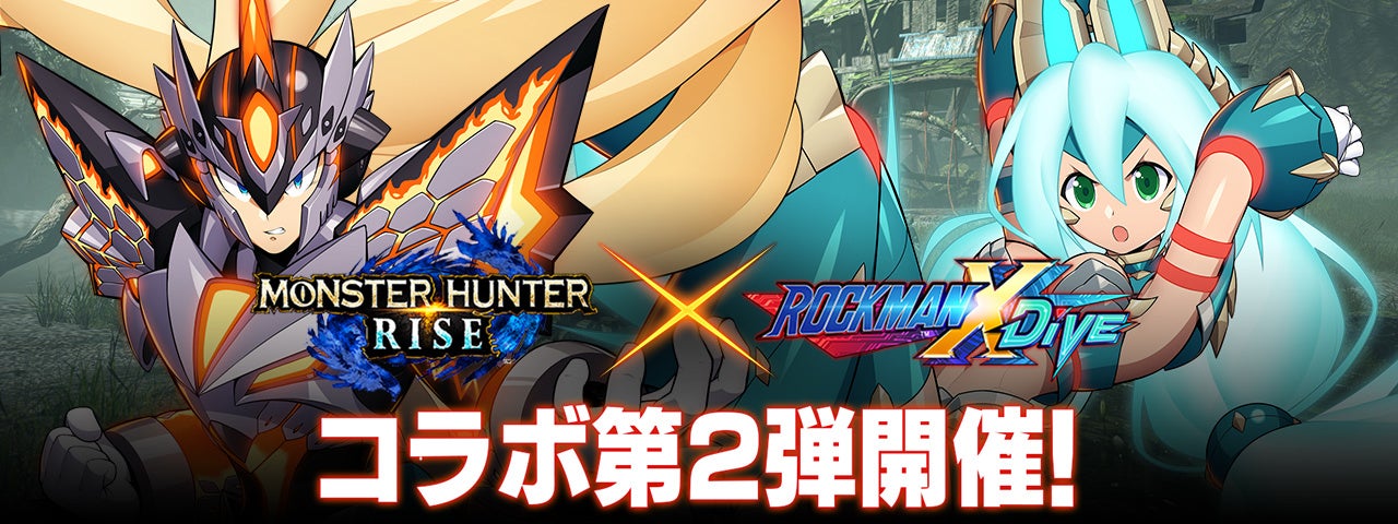 iOS/Android用ゲームアプリ『ロックマンX DiVE』では、本日1月26日(水)よりNintendo Switch『モンスターハンターライズ』(MHRise)とのコラボレーション第2弾を開催。「MONSTER HUNTER RISE」第2弾カプセル、イベントステージ「気焔万丈!霞忍ぶ幽林の幻影」が配信開始!