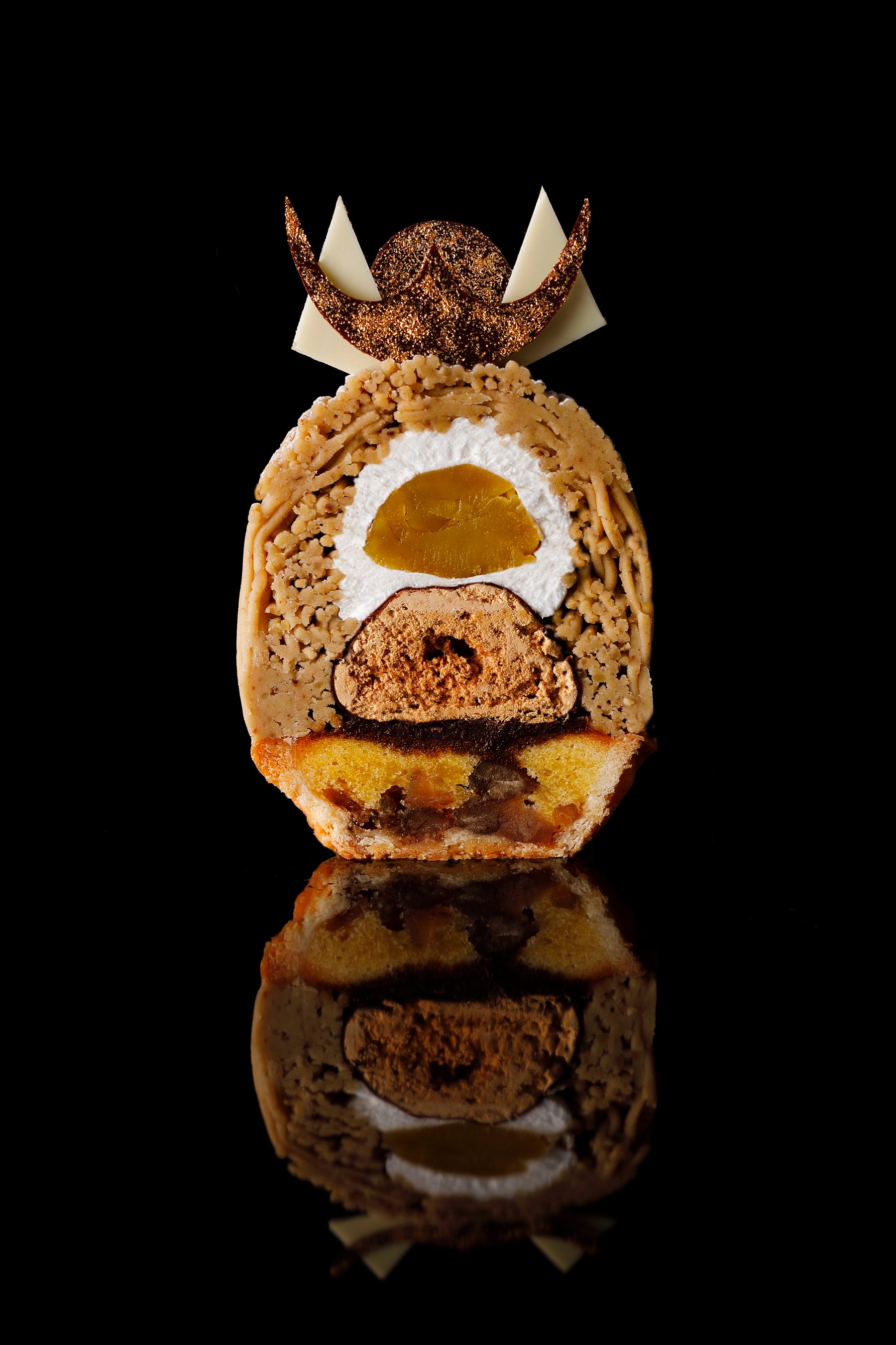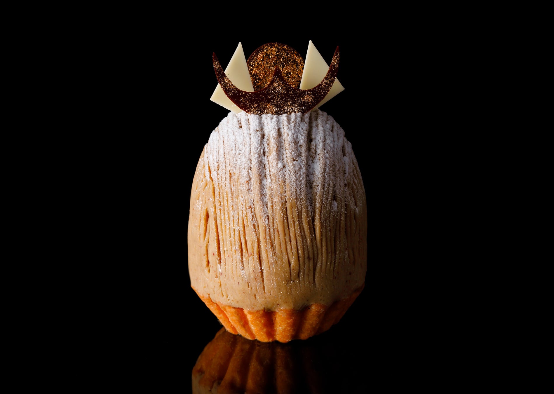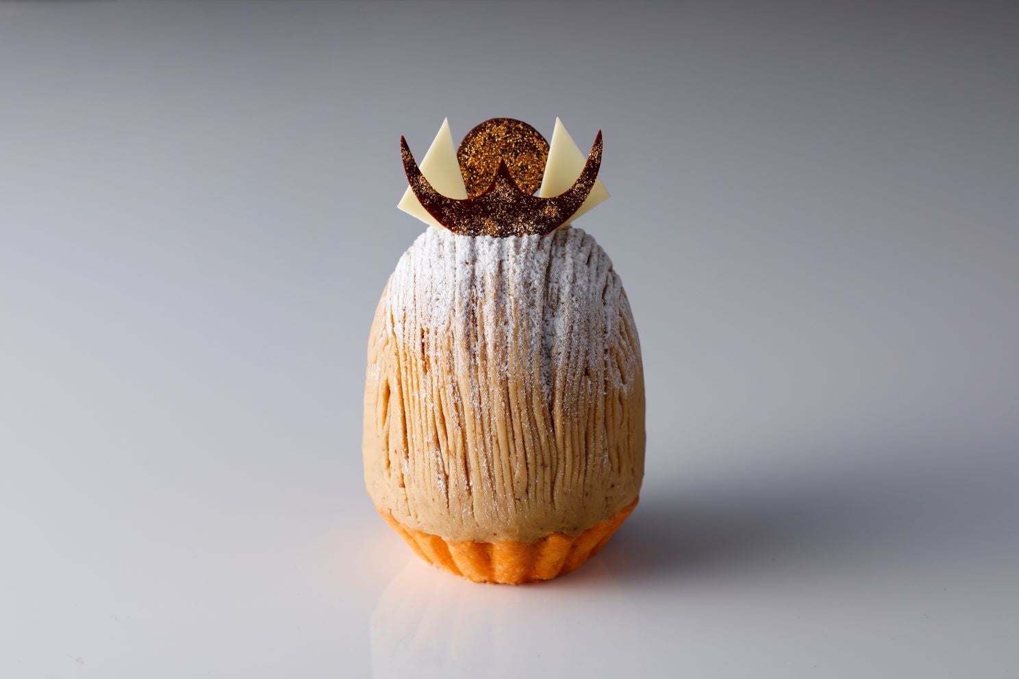 何層にも重ねられた濃厚なマロンペーストの中には、 「スーパーシリーズ」ならではのこだわりがぎっしりと詰まっています。土台となるタルト生地には、イタリア産マロングラッセ入りアーモンドタルトを使用。中には、「チョコレートコーティングした黒糖メレンゲ」や「黒蜜あんこ」を加え、青ヶ島の「ひんぎゃの塩」を隠し味に。さらに九州大牟田産生クリームに包まれた熊本県産和栗の「甘露煮」を加え、より“和栗”の味わいをお愉しみいただけるモンブランに仕上げました。