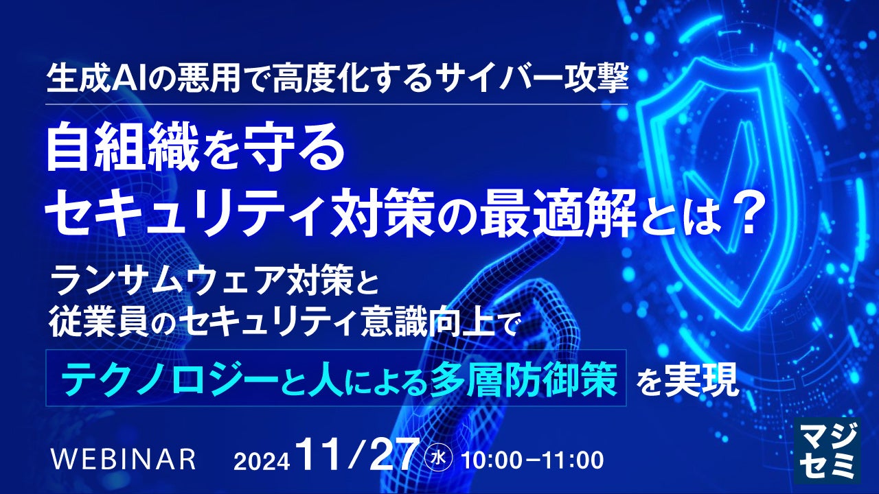 マジセミ株式会社は「生成AIの悪用で高度化するサイバー攻撃、自組織を守るセキュリティ対策の最適解とは?」というテーマのウェビナーを開催します。