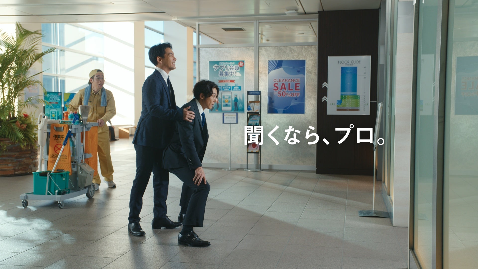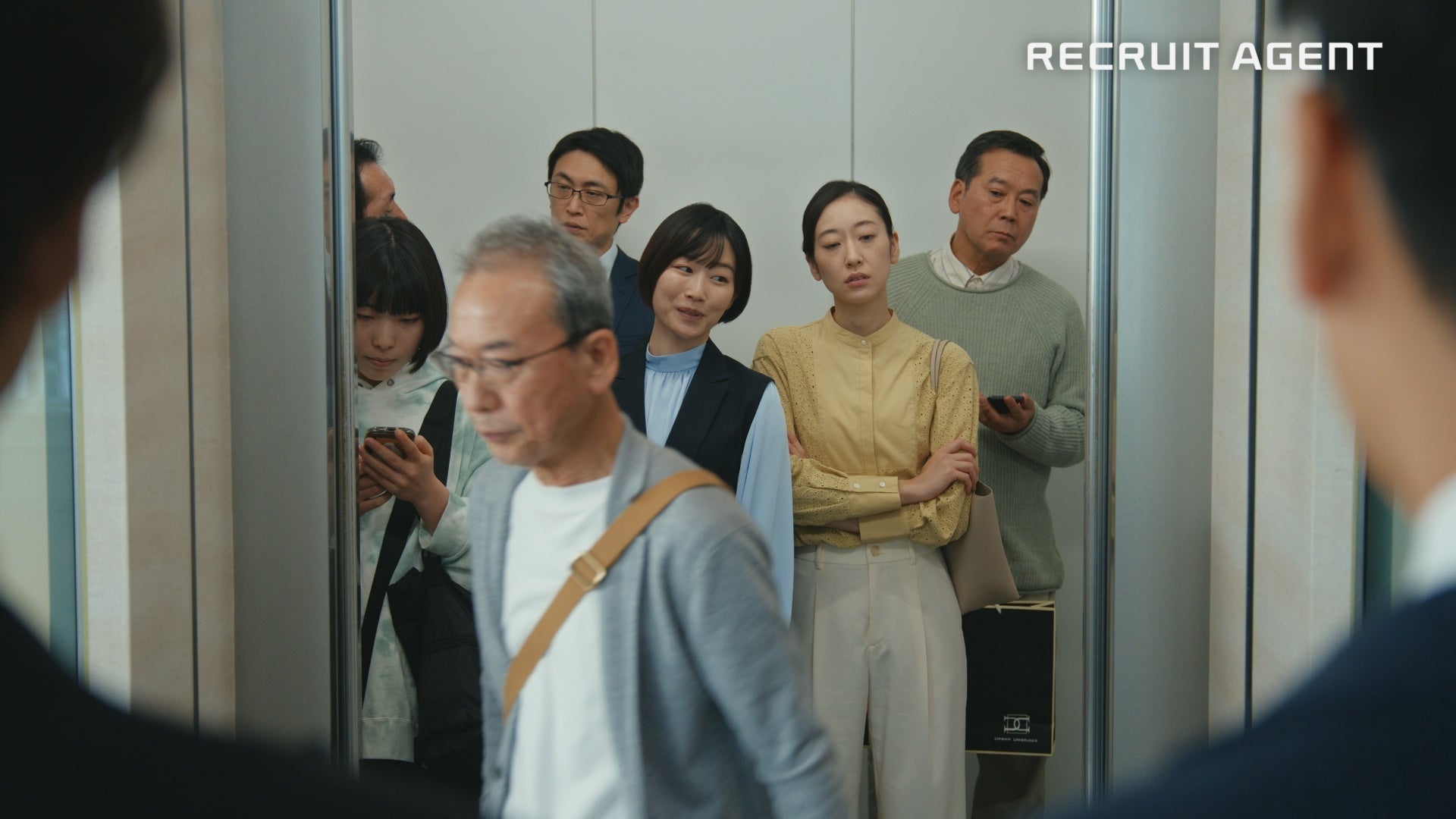「エレベーター」篇では、「転職って誰に相談したらいいんだろう?」「転職すべきかも、分かんないけど。誰か教えて…」と女性たちがエレベーターの中で悩みを吐露しています。扉が開くと、そこには高橋さん・柳楽さんが。女性たちの会話に合いの手を入れるように「リクルートエージェント」と優しく語りかけます。しかし無情にも扉は閉じていき、なんとか声を届けようと必死なお二人の様子に注目です。