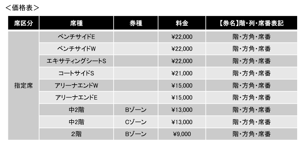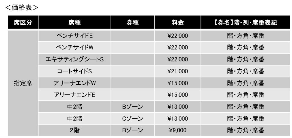 ・お付き添いの方はパイプ椅子でのご観戦となります。また同伴者が2名以上の場合は同様の席種をご購入ください。
