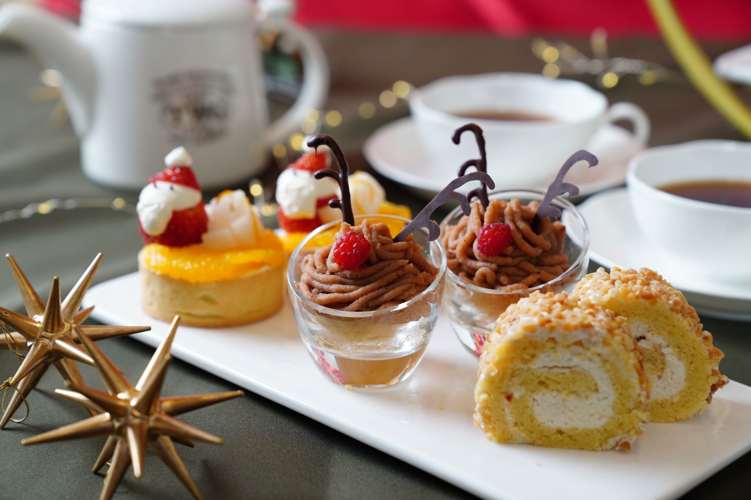 スイーツは、オレンジと梨のタルトに、サンタクロースをイメージしたいちごと生クリームの組み合わせが絶妙の「フルーツタルト いちごサンタ添え」、ブリオッシュに紅茶シロップを浸して、モンブランクリームと合わせた「栗と紅茶のサバラン トナカイ仕立て」など、クリスマス仕様でお迎えいたします。