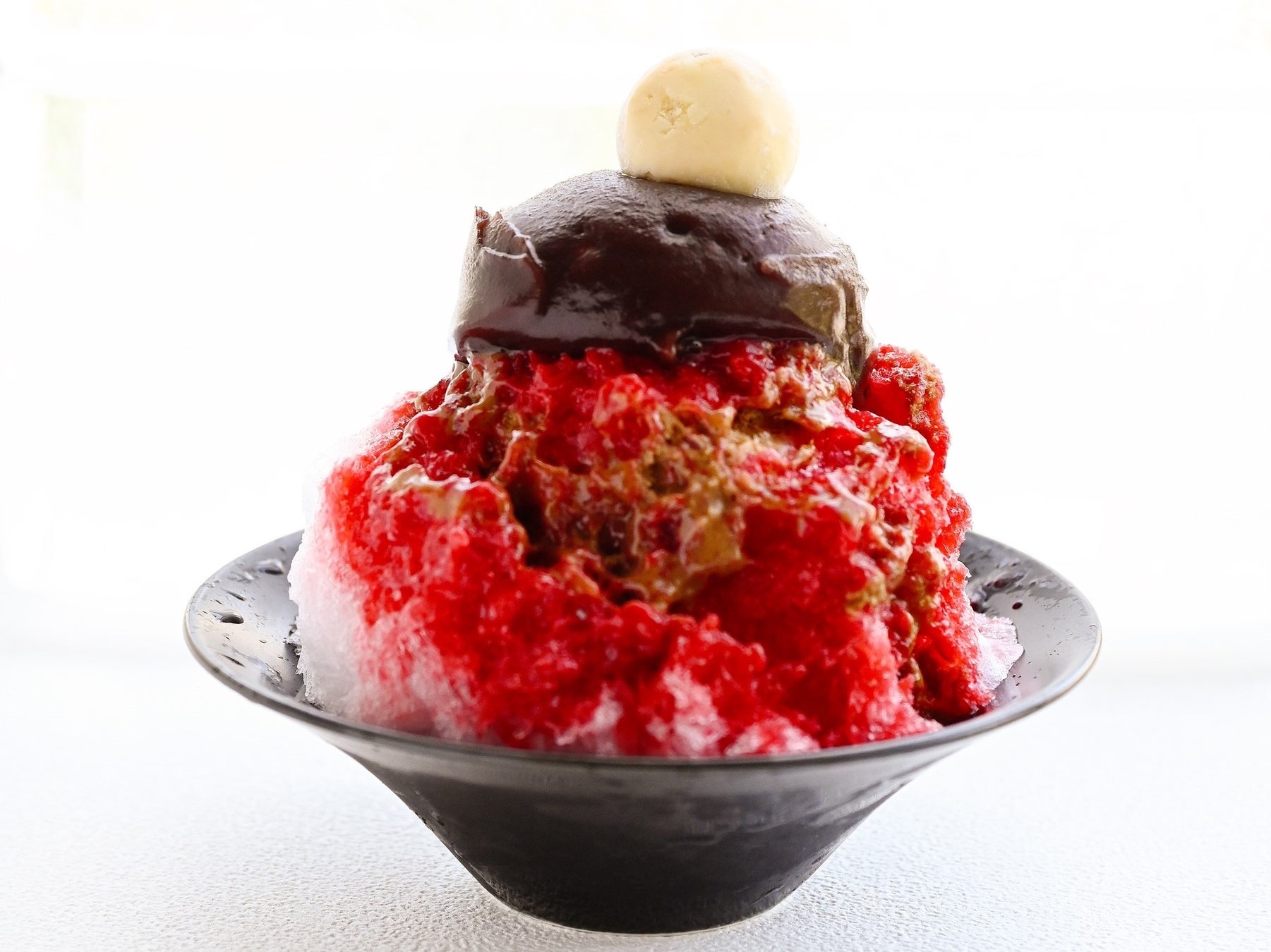 濃厚「ラズベリーソース」に特製こし餡をあわせた当風(モダン)な御氷。