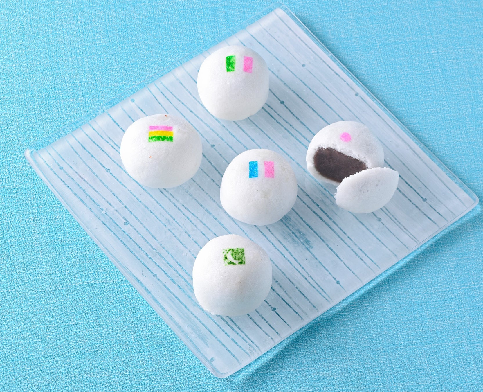 山芋を使ったふんわりした皮と上品なこし餡の薯蕷まんじゅうに、日本の淡路島の藻塩・フランスのゲランドの塩・ボリビアの紅岩塩・イタリア、パキスタンの岩塩の5種類の塩を使用し、餡と生地にほのかな塩味を加えた事で、優しい甘さが引き立ちます。各国の国旗があしらわれた、可愛らしいおまんじゅうです。