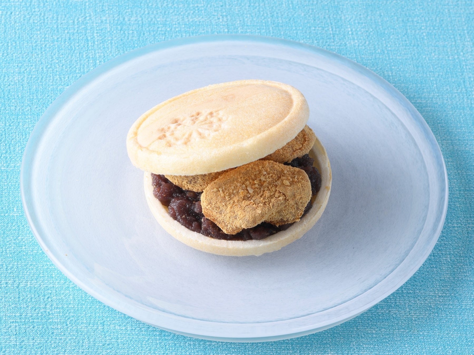 最中の中には特製のなめらかなこし餡と、香りのよいすりごま、ほのかな塩味をプラスしたきな粉をまとったわらび餅。一口食べると最中の香りとごまきな粉の香りが広がります。きな粉には細かい粒子が特徴の沖縄の雪塩をブレンドし、まろやかさを加えています。わらび餅と最中のマリアージュが楽しめます。【実演】