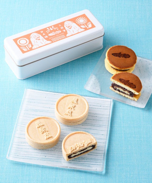 十勝産小豆にフランスのイズニーバターをはさみ、ゲランド塩を強めに効かせた人気スイーツ「シーラカンス モナカ」3個と、十勝産小豆と国産バターをはさみ、塩気を効かせた「シーラカンス ドラヤキ」2個を、日本橋三越本店限定缶に詰め合わせました。シーラカンス流の2種類の味わいを楽しめるおすすめのセットです。
