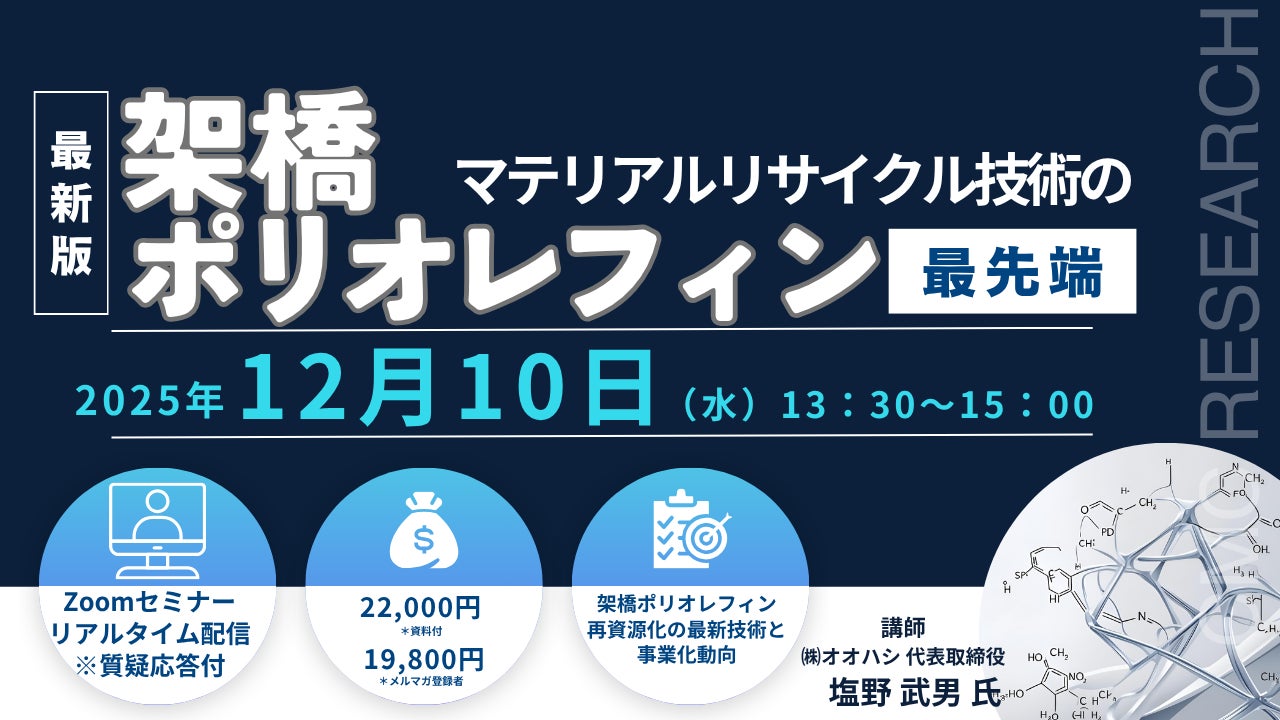 【ライブ配信/ZOOM】「架橋ポリオレフィンのマテリアルリサイクル技術の最先端」セミナー開催! 12月09日(水)主催:(株)シーエムシー・リサーチ