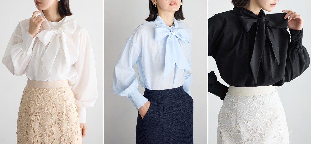 顔まわりが華やぐボウタイブラウス。