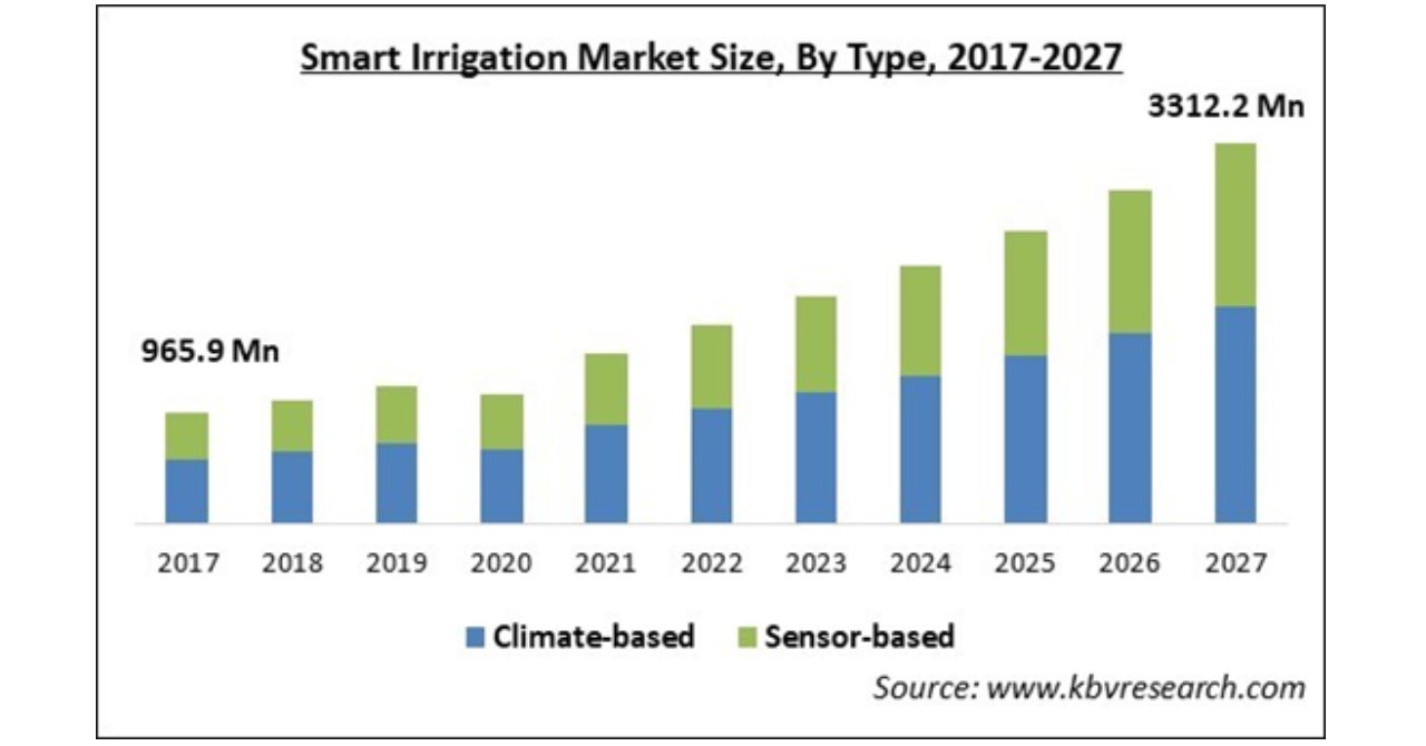 スマート灌漑の市場規模、2027年に33億1,220万ドルに達する予測